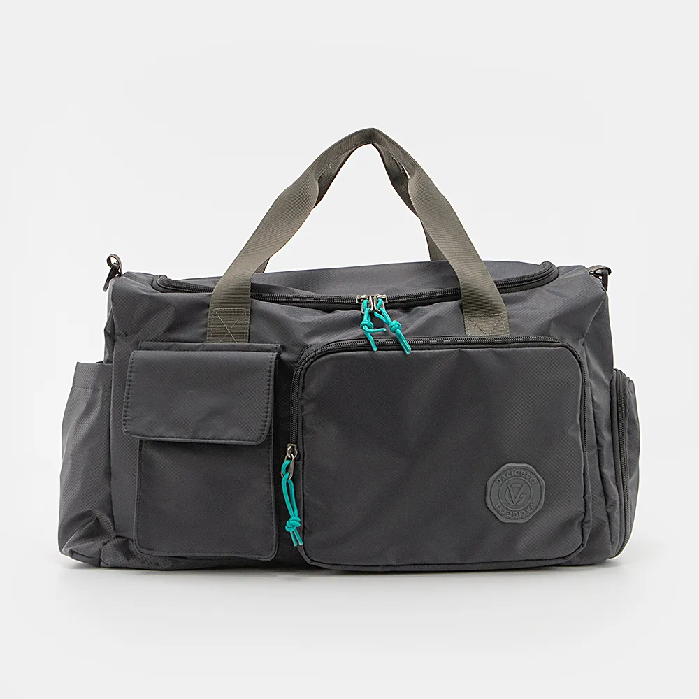 Дорожно-спортивная сумка от торговой марки Valigetti из прочной практичной ткани рип-стоп. Модель с двумя удлиненными ручками и съемным регулируемым плечевым ремнем. Отделение закрывается клапаном на молнии. Внутри: текстильная подкладка, карман на молнии. На лицевой стороне – вместительный накладной карман на молнии, карман с клапаном на липучке. По бокам: с одной стороны – накладной карман на липучке, с другой – отделение для обуви на молнии. На задней стороне – плотная лямка для крепления на выдвижную ручку чемодана, карманна молнии. Молодежная текстильная коллекция Valigetti представлена моделями, выполненными из трех видов материалов: прочной ткани рип-стоп, блестящего и матового текстиля. Фурнитура повышенной прочности обеспечивает плавность движения замка и долговечность использования.