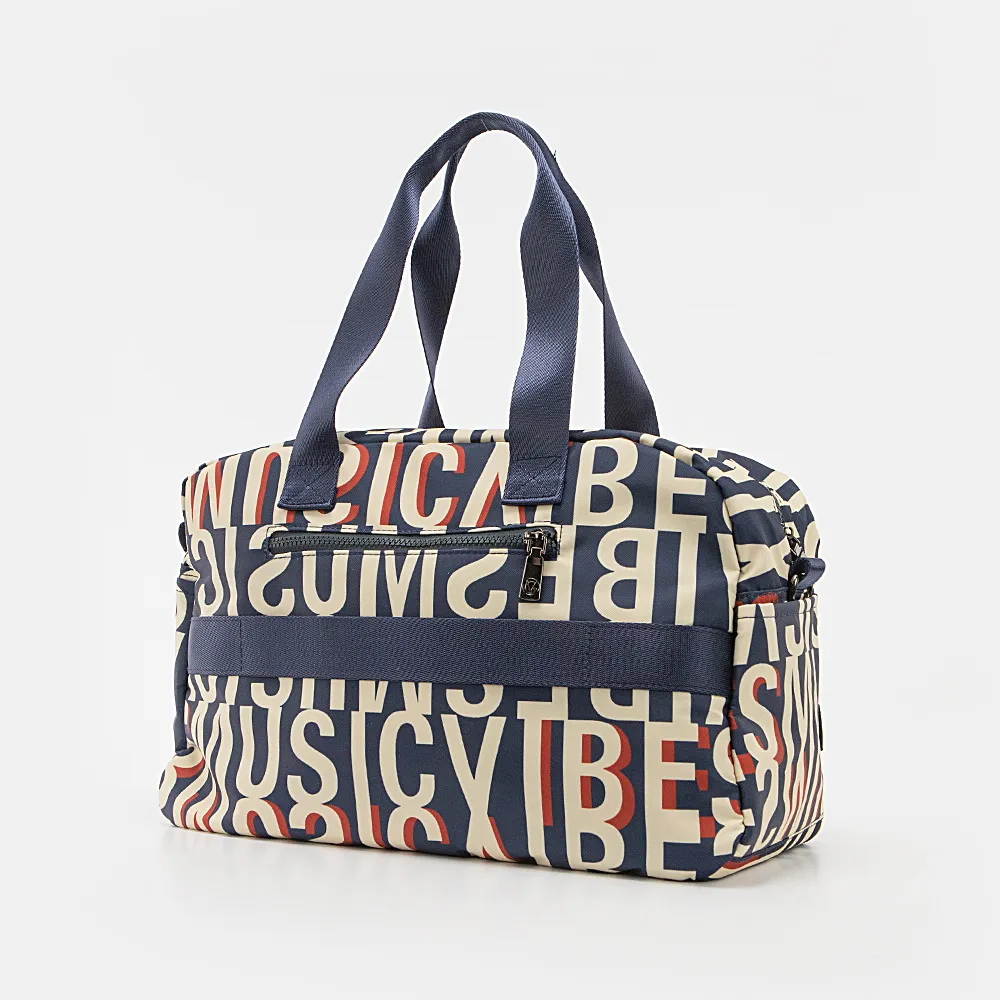 Дорожно-спортивная сумка от торговой марки Valigetti из практичного материала с глянцевым блеском и оригинальным текстовым принтом. Модель с двумя удлиненными ручками и съемным регулируемым плечевым ремнем. Отделение на молнии. Внутри: текстильная подкладка, карман на молнии, два накладных кармана. На лицевой стороне – карман на молнии. На задней стороне – карман на молнии, лямка для фиксации на выдвижную ручку чемодана. Стенки уплотненные. Молодежная текстильная коллекция представлена моделями, выполненными из трех видов материалов: прочной ткани рип-стоп, блестящего и матового текстиля. Фурнитура повышенной прочности обеспечивает плавность движения замка и долговечность использования.