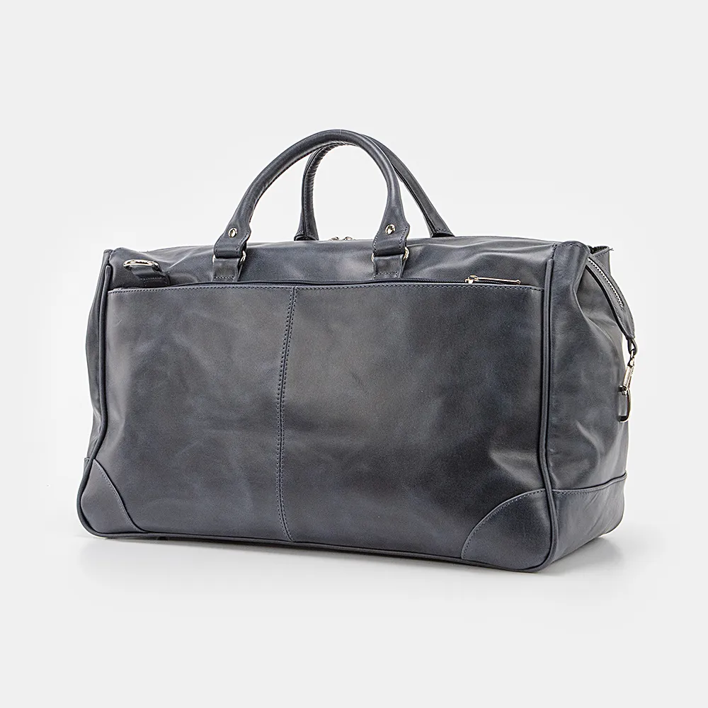 Дорожно-спортивная сумка от торговой марки Francesco Molinary из натуральной кожи синего цвета. Модель с двумя плотными ручками, съемным регулируемым плечевым ремнем. Отделение на молнии. Внутри: фирменная подкладка, карман на молнии, два накладных кармана. На лицевой стороне – два кармана на молнии. На задней стороне – карман на молнии. Дно оснащено металлическими ножками для защиты от износа.