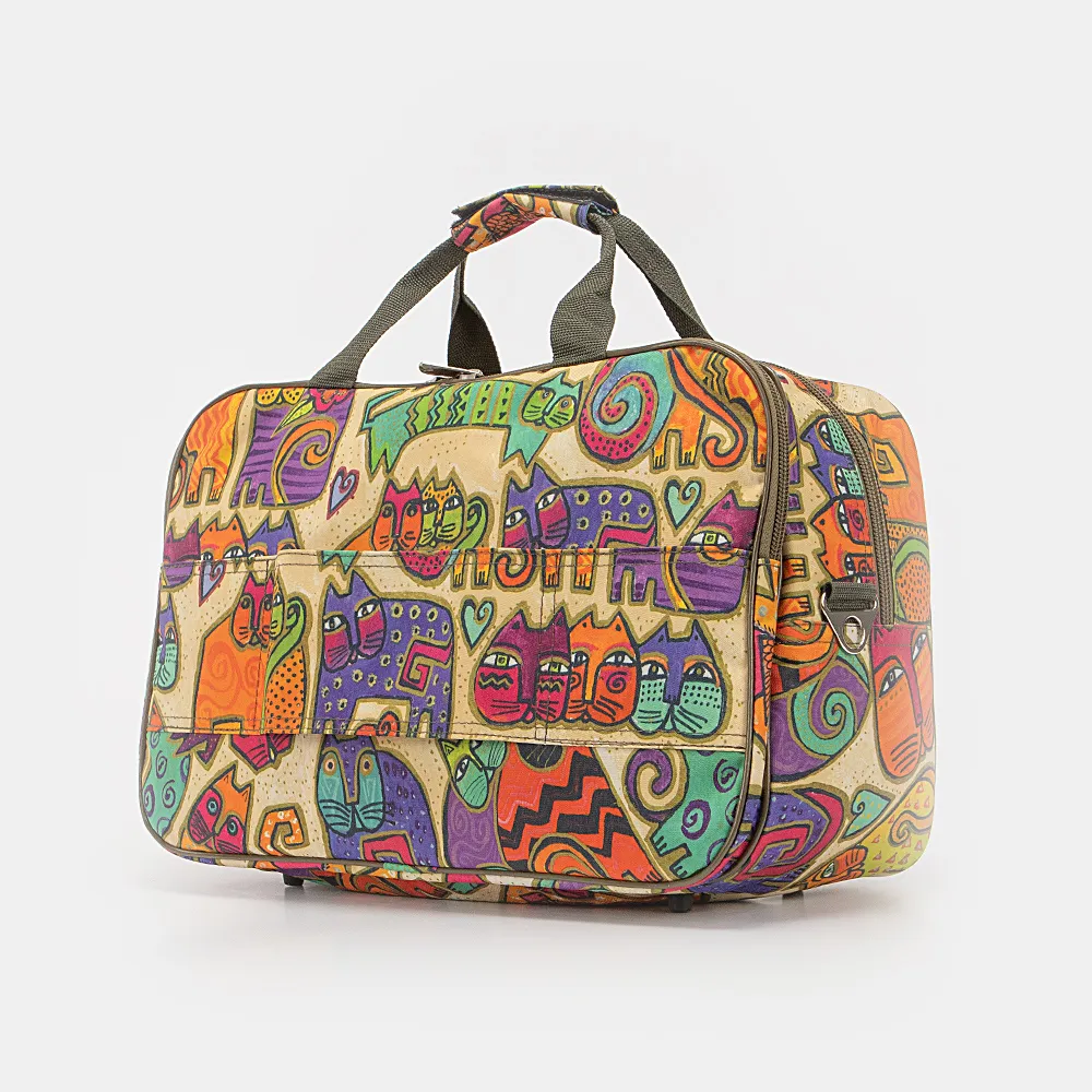 Дорожно-спортивная сумка от торговой марки Mr.Bag выполнена из плотного текстильного материала яркой расцветки с оригинальным изображением кошек. Модель с двумя плотными ручками, съемным регулируемым плечевым ремнем с мягким наплечником. Два отделения на молнии. Основное отделение с текстильной подкладкой, с карманом на молнии; также имеется отделение без подкладки. Спереди – карман на молнии, на задней стороне – лямка для крепления сумки на выдвижную ручку чемодана. Дно сумки оснащено пластиковыми ножками для защиты от износа.
