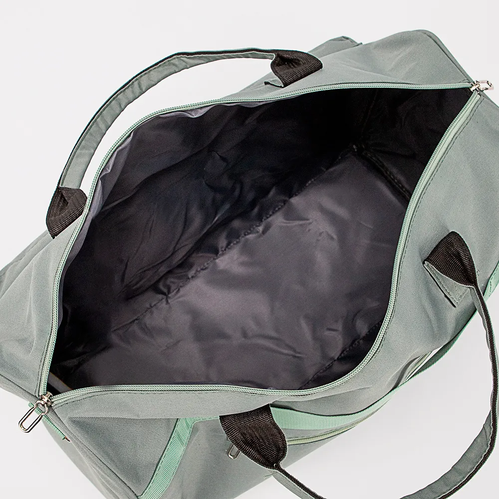 Дорожно-спортивная сумка от торговой марки Valigetti из практичного текстильного материала. Модель с двумя ручками и съемным регулируемым плечевым ремнем. Отделение на молнии. Внутри: текстильная подкладка. На лицевой стороне - карман на молнии. На задней стороне - карман на молнии, лямка для крепления на выдвижную ручку чемодана. Дно оснащено пластиковыми ножками для защиты от износа.
