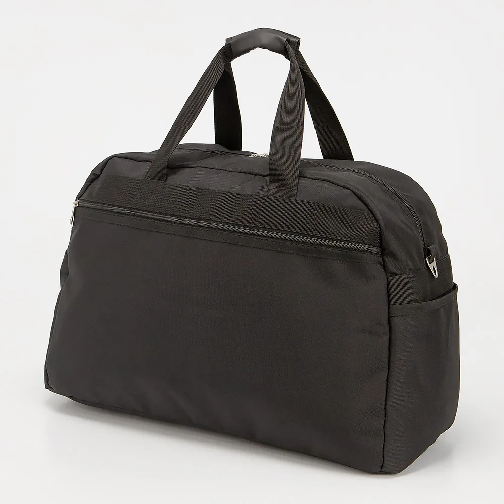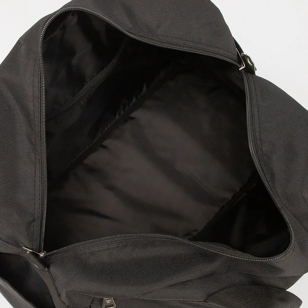Дорожно-спортивная сумка от торговой марки Ecotope из плотного текстильного материала черного цвета. Вместительная модель с двумя ручками с фиксатором на липучке и съемным плечевым ремнем с наплечником. Лицевая сторона декорирована стежкой. Отделение на молнии с двумя встречными бегунками. Внутри: текстильная подкладка, карман на молнии, накладной карман. На лицевой и задней стороне - накладной карман на молнии. По бокам - накладные карманы без застежки.