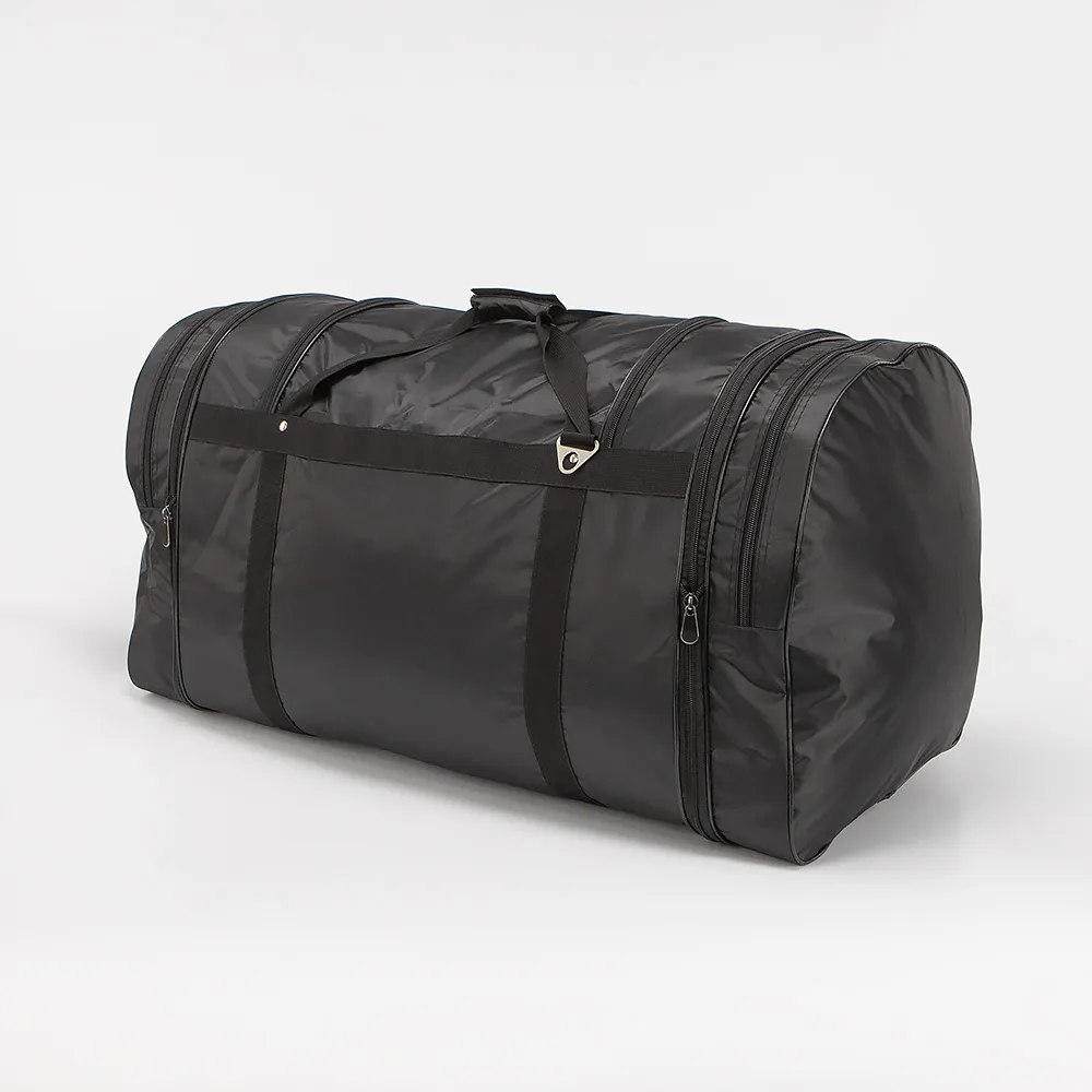 Дорожно-спортивная сумка от торговой марки Ecotope из текстильного материала черного цвета. Модель с двумя ручками с фиксатором на липучке, съемным плечевым ремнем. Клапан на молнии со встречными бегунками закрывает вместительное отделение. По бокам - карманы на молнии. На лицевой стороне - карман на молнии. По бокам имеется молния для увеличения объема сумки.