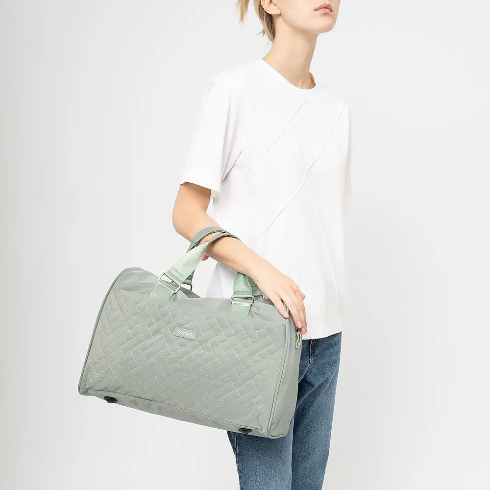 Дорожно-спортивная сумка от торговой марки Valigetti из текстильного материала сиреневого цвета. Модель с двумя ручками и съемным регулируемым плечевым ремнем, декорирована стежкой. Отделение на молнии. Внутри: текстильная подкладка, карман на молнии, накладной карман. С лицевой стороны - карман на молнии. Сзади - петля для крепления на ручку чемодана. Дно оснащено ножками для защиты от износа.