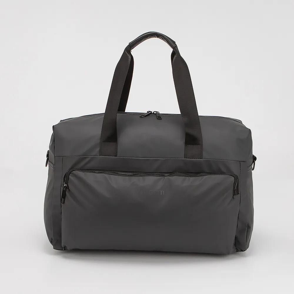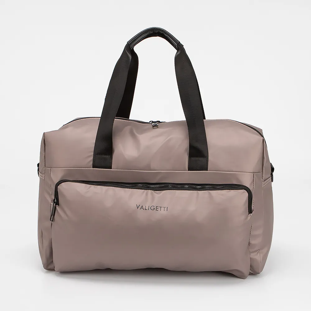 Дорожно-спортивная сумка от торговой марки Valigetti из текстильного материала серого цвета. Модель с двумя ручками и съемным регулируемым плечевым ремнем. Отделение на молнии. Внутри: текстильная подкладка, карман на молнии. С лицевой стороны - карман на молнии. Сзади - петля для крепления на ручку чемодана и карман на молнии.