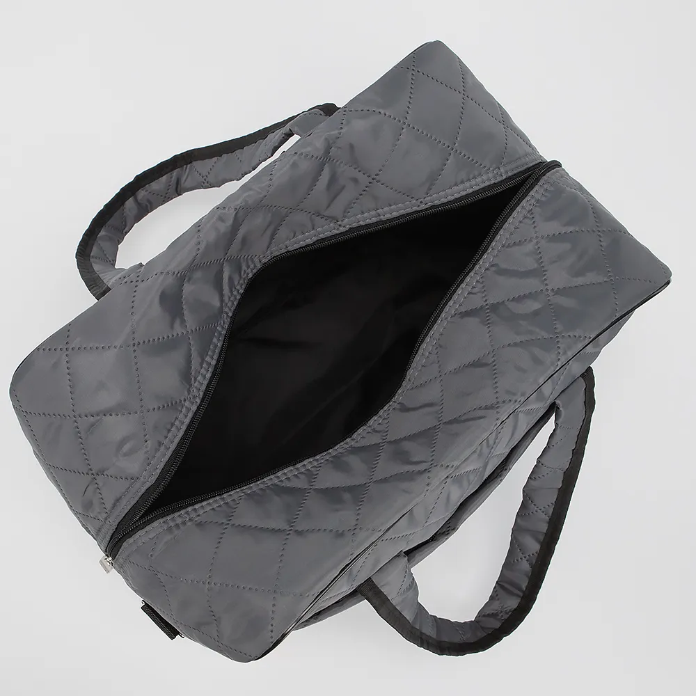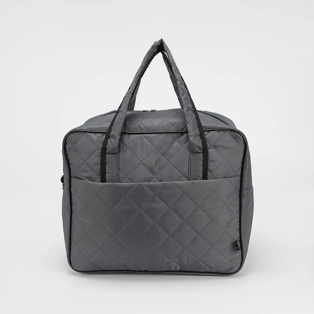 Дорожно-спортивная сумка от торговой марки Mr.Bag выполнена из текстильного материала серого цвета. Модель с двумя ручками и съемным регулируемым плечевым ремнем. Декорирована ромбовидной стежкой. Отделение на молнии с двумя встречными бегунками. На лицевой и задней сторонах сумки - карманы на молнии. Имеется лямка для крепления на выдвижную ручку чемодана.