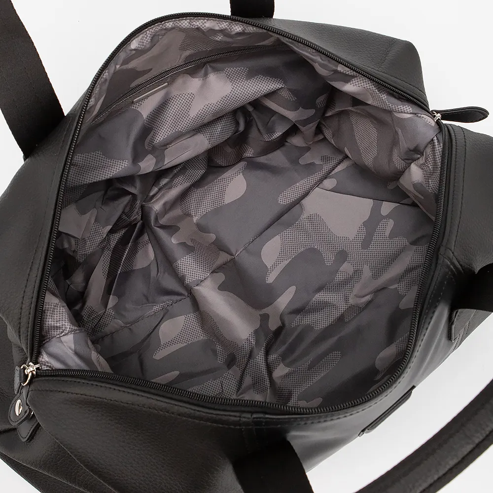 Дорожно-спортивная сумка от торговой марки David Jones выполнена из искусственной кожи бежевого цвета. Модель с двумя ручками и съемным регулируемым плечевым ремнем. Отделение на молнии. Внутри: текстильная подкладка, карман на молнии, накладной карман. На задней стороне - карман на молнии и лямка для крепления на выдвижную ручку чемодана.