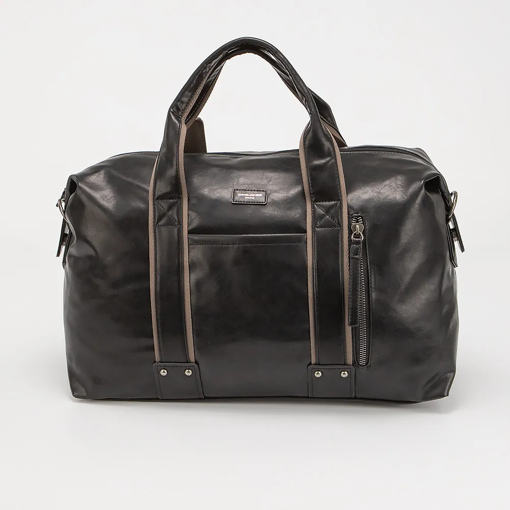 Дорожно-спортивная сумка от торговой марки David Jones выполнена из искусственной кожи коричневого цвета. Модель с двумя ручками и съемным регулируемым плечевым ремнем из текстильного материала. Отделение на молнии. Внутри: текстильная подкладка, карман на молнии, накладной карман. На лицевой стороне - карман на молнии. На задней стороне - карман на молнии.