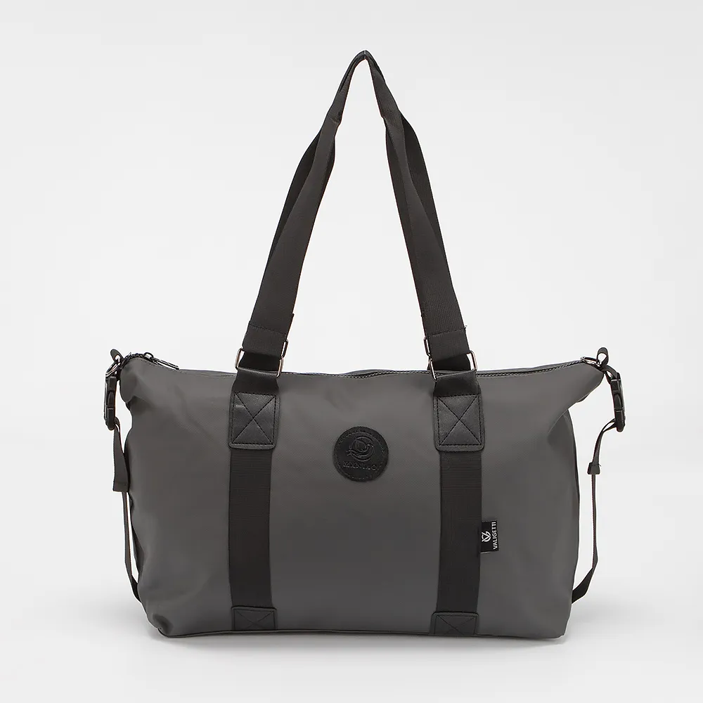 Дорожно-спрортивная сумка от торговой марки Valigetti выполнена из плотного практичного текстильного материала серого цвета. Вместительная модель с двумя длинными ручками и съемным регулируемым плечевым ремнем. Отделение на молнии. Внутри: текстильная подкладка, карман на молнии, накладные карманы. На задней стороне - карман на молнии.