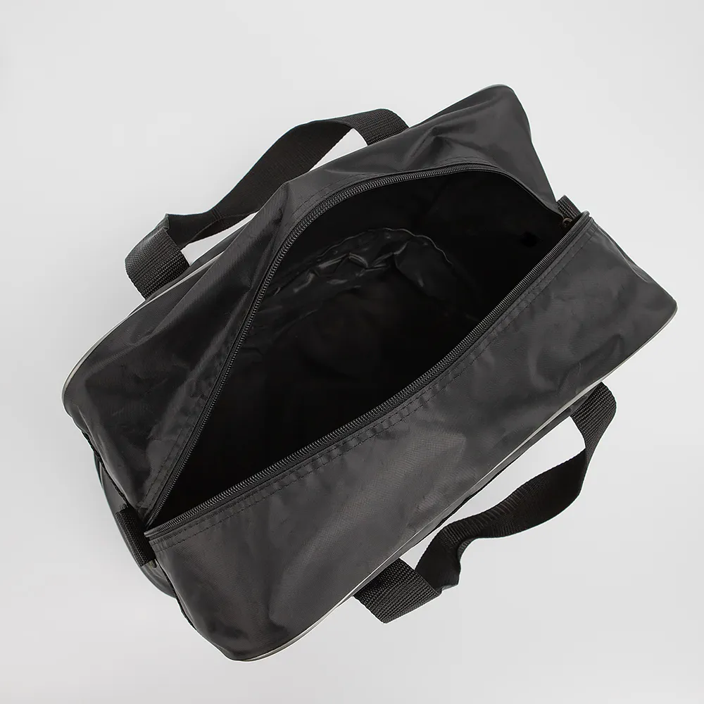 Дорожно-спортивная сумка от торговой марки Mr.Bag выполнена из плотного текстильного материала черного цвета. Модель с двумя ручками и съемным регулируемым плечевым ремнем. Отделение на молнии. Снизу имеется моолния для увеличения объема. С лицевой стороны - карман на молнии.