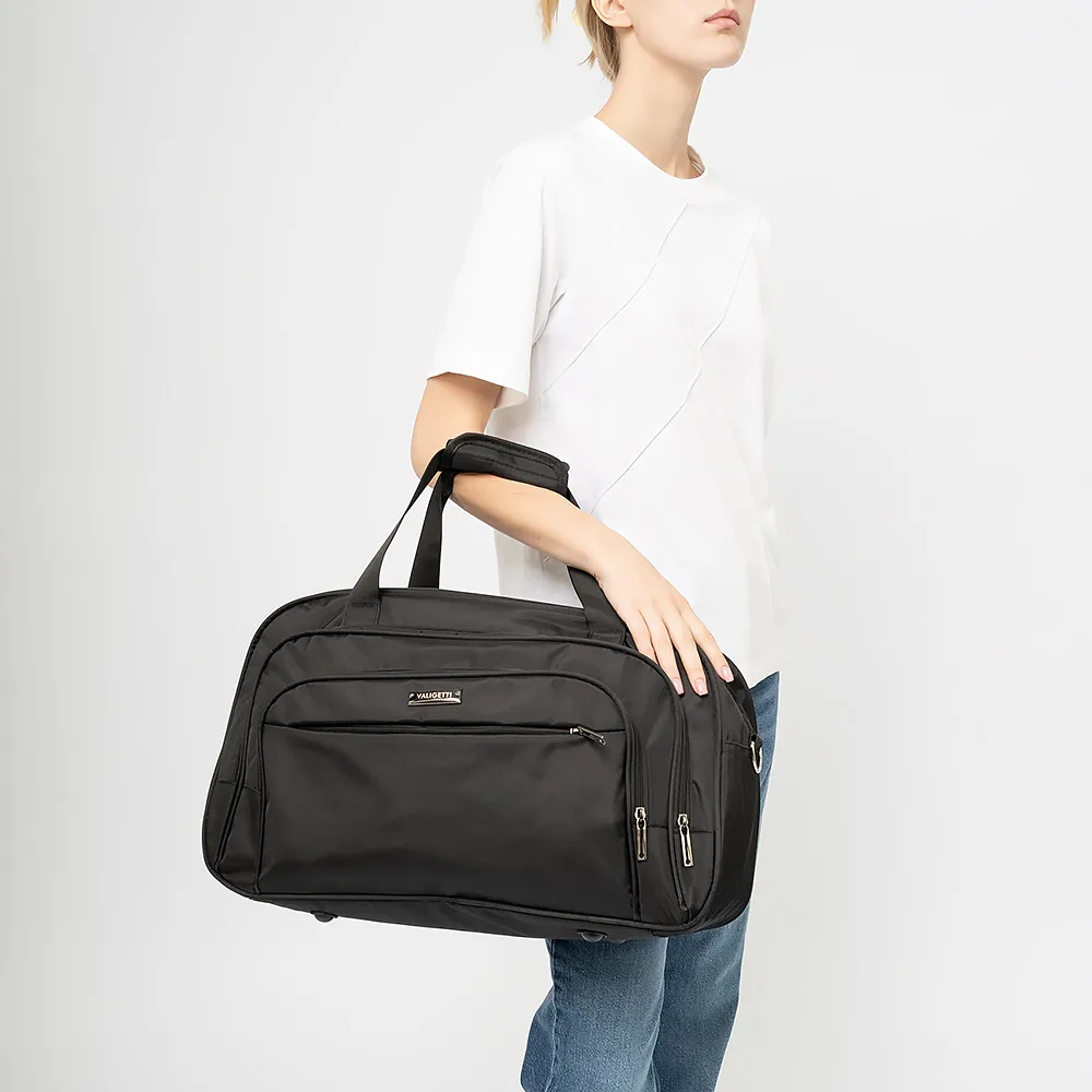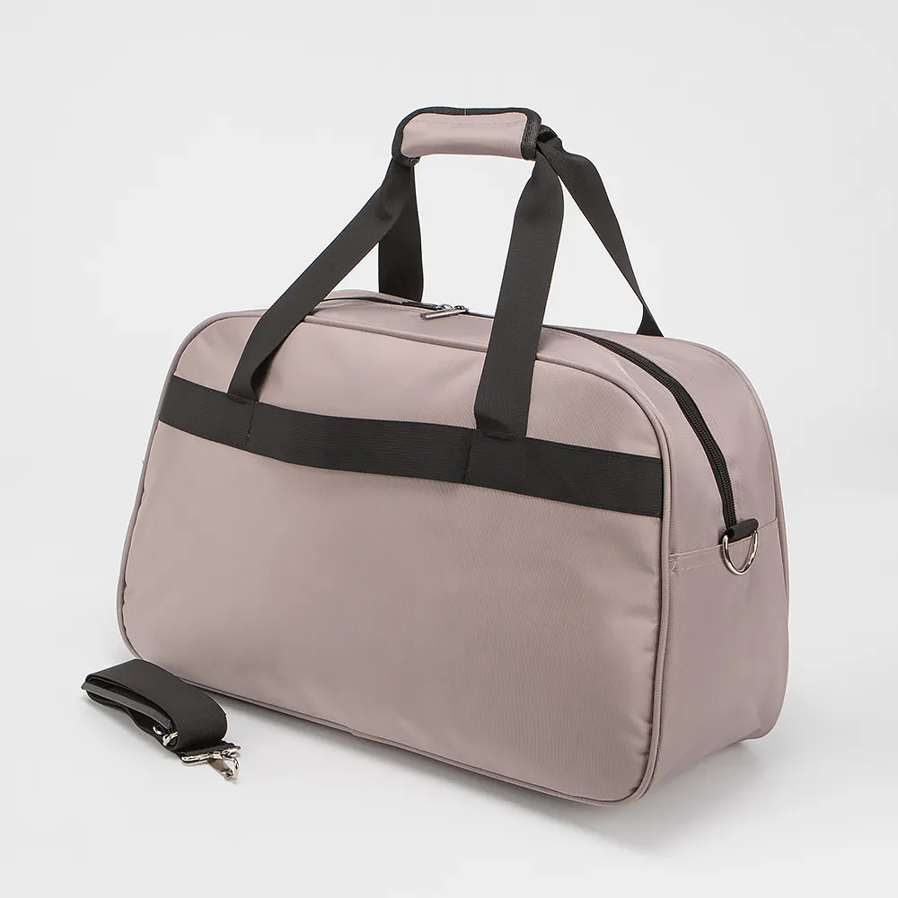 Дорожно-спортивная сумка от торговой марки Valigetti из текстильного материала сиреневого цвета. Модель с двумя ручками с фиксатором на липучке и съемным регулируемым плечевым ремнем. Отделение на молнии. Внутри: текстильная подкладка, карман на молнии, накладной карман. С лицевой стороны - три кармана на молнии. Сзади - петля для крепления на ручку чемодана. Дно оснащено ножками для защиты от износа.