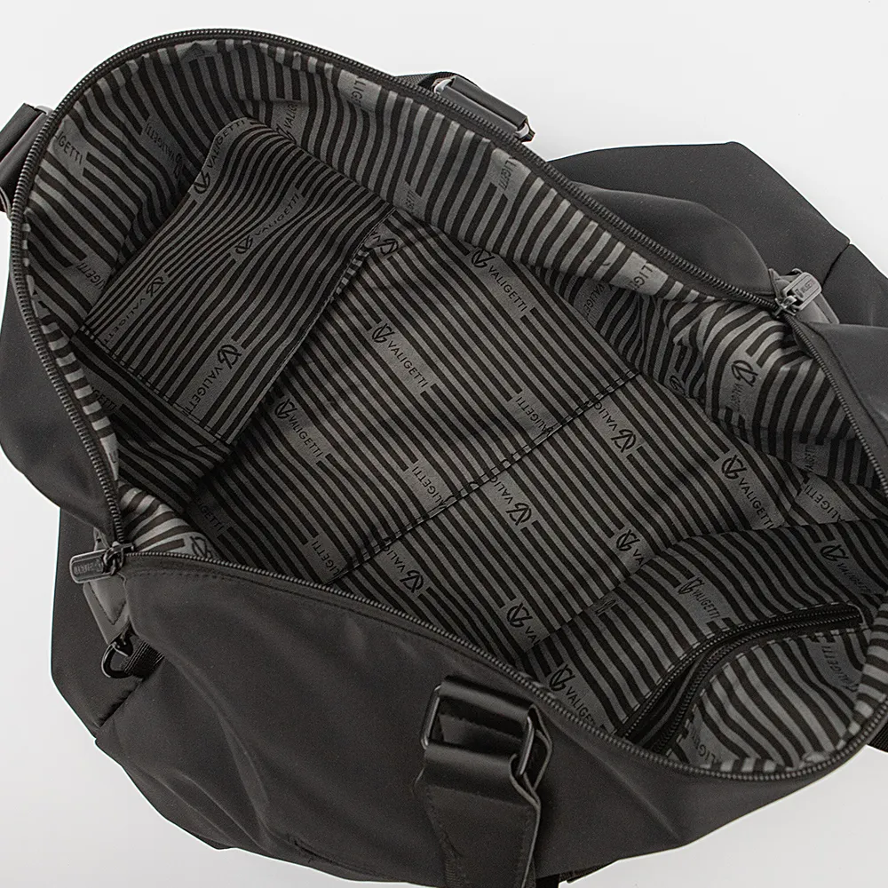 Дорожно-спортивная сумка от торговой марки Valigetti из прочного практичного текстильного материала коричневого цвета. Модель с двумя ручками и съемным регулируемым плечевым ремнем. Отделение на молнии. Внутри: текстильная подкладка, карман на молнии, накладной карман. На задней стороне – карман на молнии.
