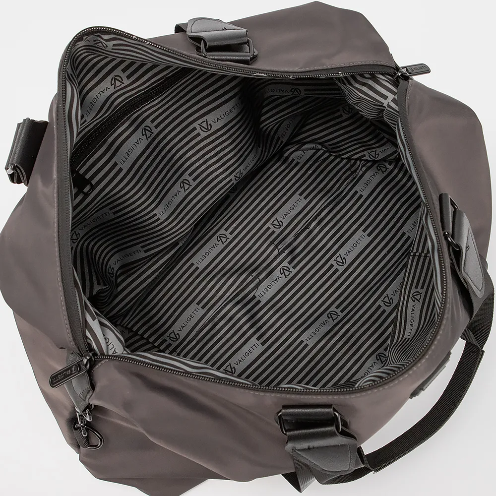 Дорожно-спортивная сумка от торговой марки Valigetti из прочного практичного текстильного материала коричневого цвета. Модель с двумя ручками и съемным регулируемым плечевым ремнем. Отделение на молнии. Внутри: текстильная подкладка, карман на молнии, накладной карман. На задней стороне – карман на молнии.