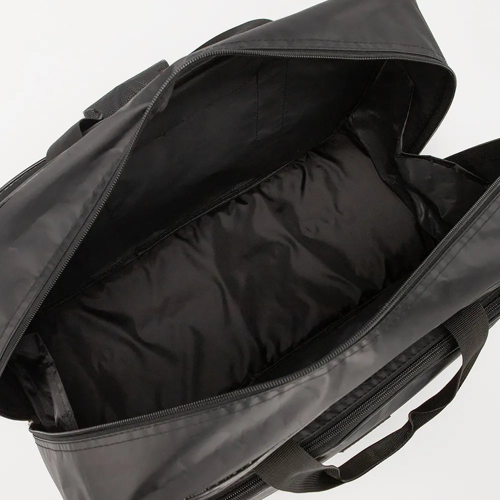 Дорожно-спортивная сумка от торговой марки Ecotope из плотного текстильного материала черного цвета. Вместительная модель с двумя ручками с фиксатором на липучке и съемным плечевым ремнем с наплечником. Отделение на молнии. Внутри: текстильная подкладка, карман на молнии, накладной карман. На лицевой и задней стороне - накладной карман на молнии. Дно оснащено пластиковыми ножками для защиты от износа.