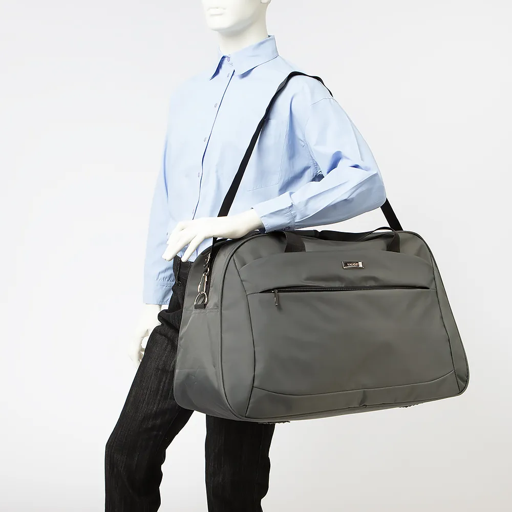 Дорожно-спортивная сумка от торговой марки Valigetti из текстильного материала серого цвета. Модель с двумя ручками с фиксатором на липучке и съемным регулируемым плечевым ремнем. Отделение на молнии. Внутри: текстильная подкладка, карман на молнии. С лицевой стороны - карман на молнии. Сзади - петля для крепления на ручку чемодана. Дно оснащено ножками для защиты от износа.