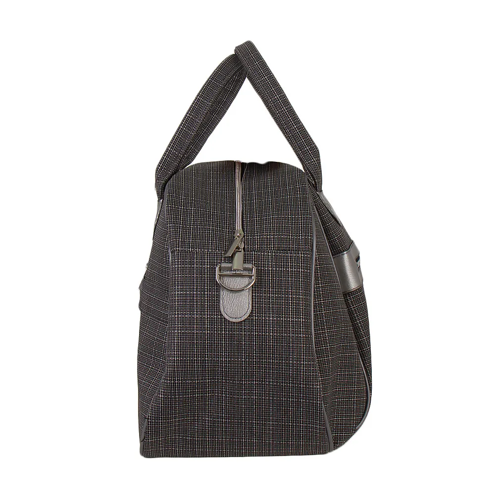 Вместительная дорожно-спортивная сумка от торговой марки Ecotope выполнена из прочного текстильного материала катионик серого цвета с вставками из искусственной кожи серебристо-серого цвета. Компактная модель с двумя плотными ручками, съемным регулируемым плечевым ремнем. Отделение на молнии. Внутри: навесной карман. На лицевой стороне – карман на молнии. На задней – карман на молнии, лямка для крепления на выдвижную ручку чемодана. Дно оснащено металлическими ножками для защиты от износа.