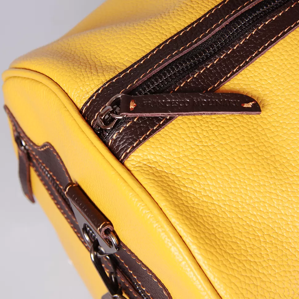 - Дорожная сумка из качественной натуральной кожи бренда Francesco Molinary яркой расцветки;