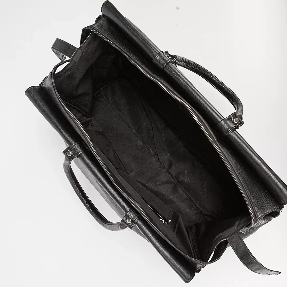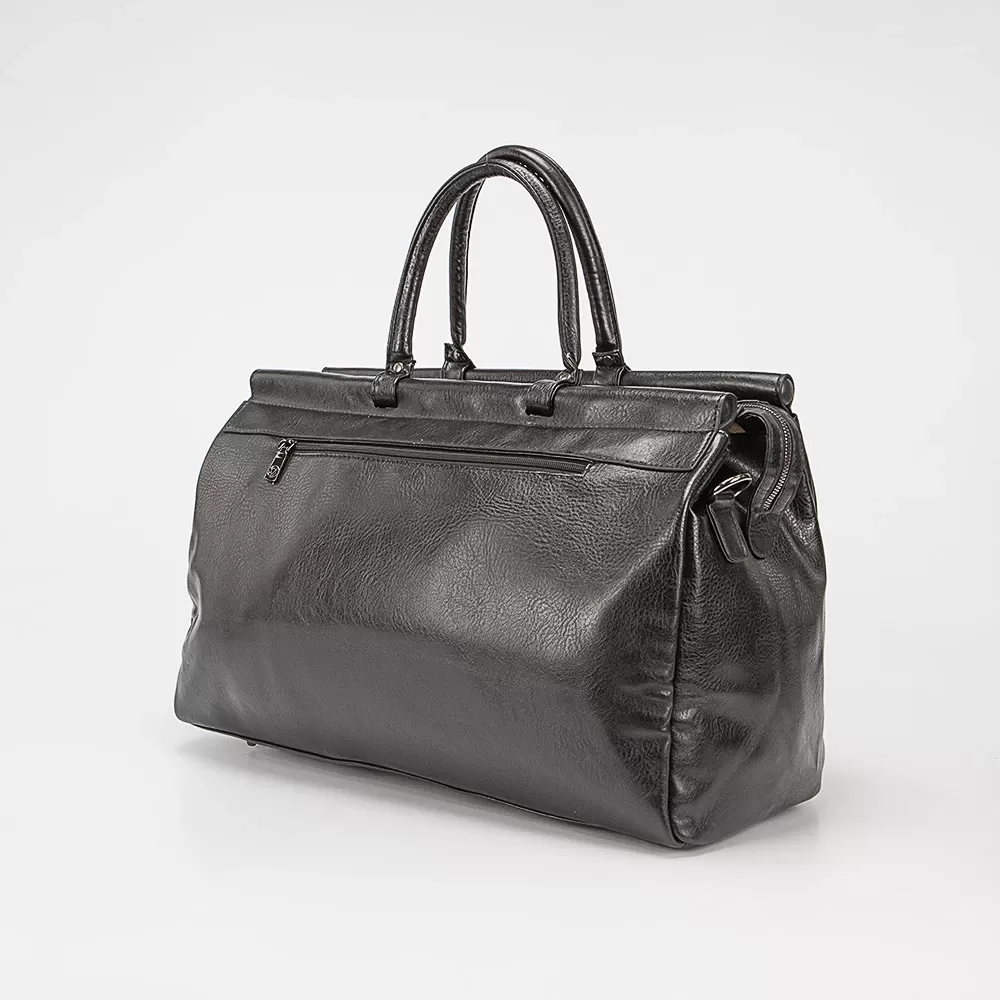 Дорожная сумка от известного бренда Valigetti выполнена из искусственной кожи черного цвета. Модель оснащена двумя удлиненными ручками и регулируемым съемным плечевым ремнем из текстиля.