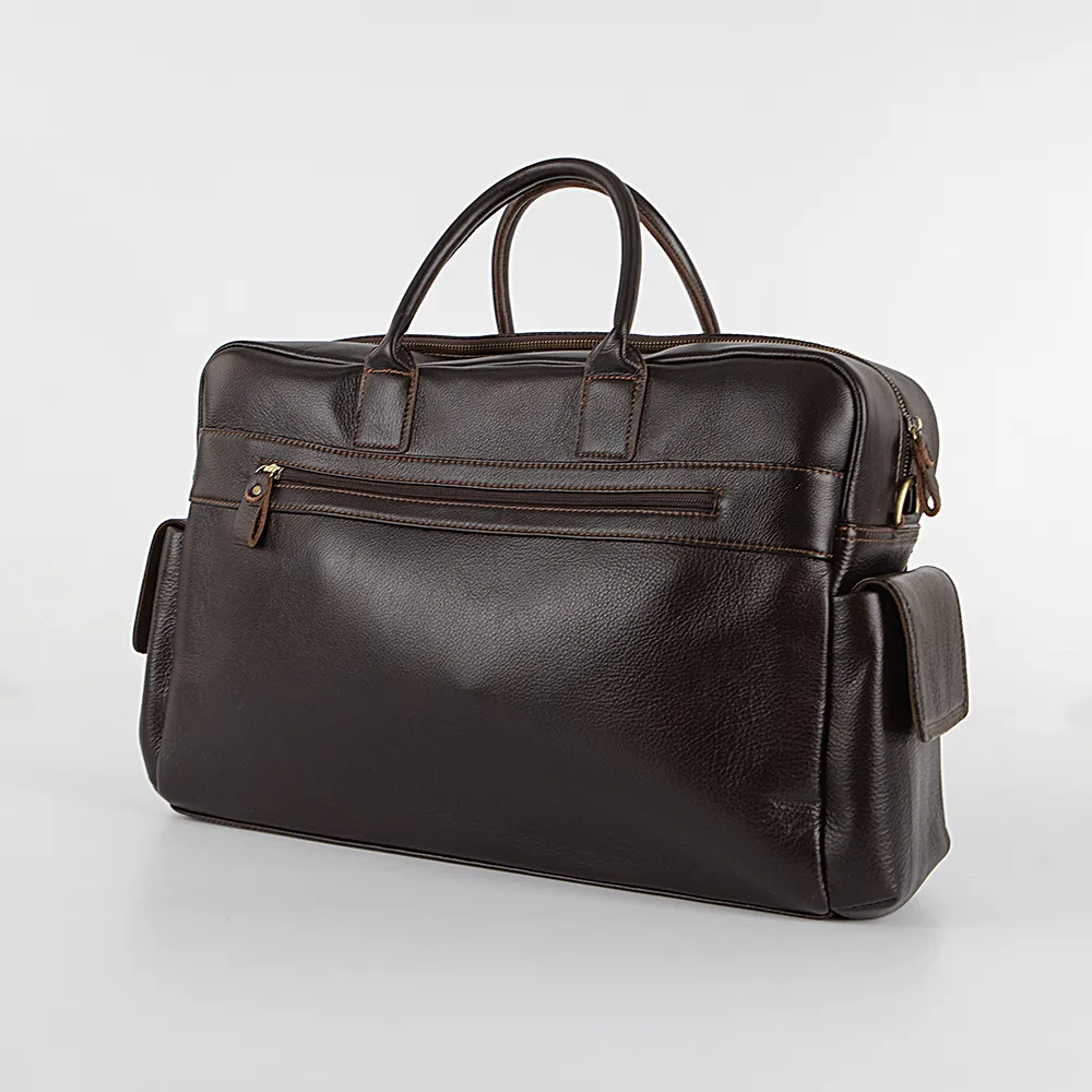 Дорожно-спортивная сумка от торговой марки Francesco Molinary из натуральной кожи коричневого цвета. Компактная функциональная модель с двумя плотными ручками и съемным регулируемым плечевым ремнем. Отделение на молнии. Внутри: фирменная подкладка, накладной карман с уплотненной стенкой для ноутбука, карман на молнии, два накладных кармана. На лицевой стороне – четыре кармана на молнии. По бокам – накладной карман с клапаном на кнопке. На задней стороне – вместительный карман на молнии.
