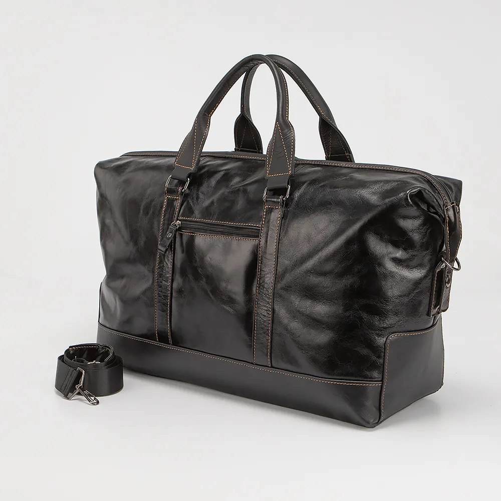 Дорожно-спортивная сумка от торговой марки Francesco Molinary из натуральной кожи черного цвета. Вместительная модель с двумя ручками, съемным регулируемым текстильным плечевым ремнем с кожаным наплечником. Отделение на молнии. Внутри: фирменная подкладка, карман на молнии. С лицевой стороны два кармана на молнии. На задней стороне - карман на молнии. Дно оснащено металлическими ножками для защиты от износа.