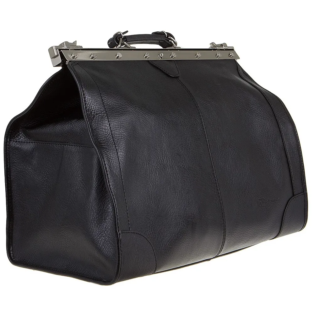 Вместительный саквояж от торговой марки Francesco Molinary из натуральной кожи черного цвета с фирменной металлической фурнитурой. Модель с плотной ручкой, с надежным рамочным замком, благодаря которому обеспечивается комфортный доступ внутрь. Внутри: фирменная подкладка, два кармана на молнии. На задней стороне – карман на молнии. Саквояж подчеркнет вкус и статус своего владельца.