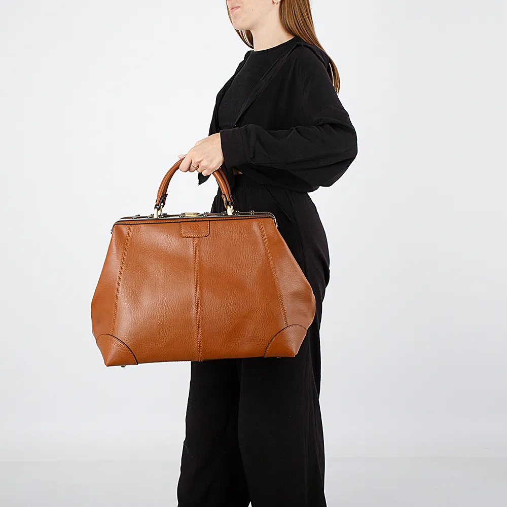 Саквояж от торговой марки Francesco Molinary выполнена из натуральной кожи коричневого цвета. Модель с двумя плотными ручками. Имеет рамочный тип открытия, что обеспечивает удобный доступ. Отделение на молнии с двумя встречными бегунками. Внутри: фирменная подкладка, карман на молнии. На задней стороне – карман на молнии. Дно оснащено ножками для защиты от износа.