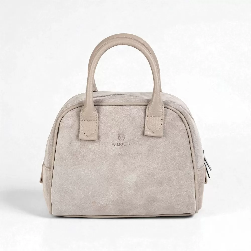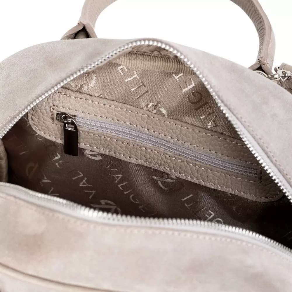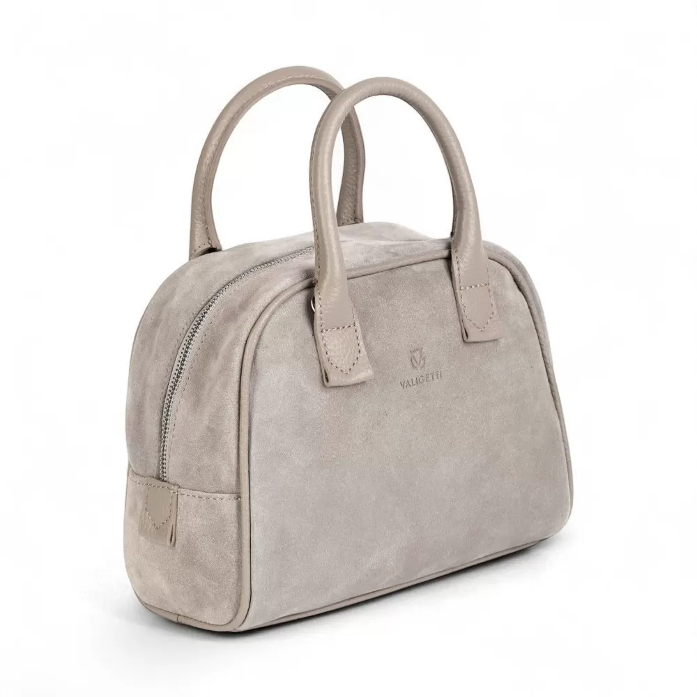 Сумка из натуральной замши Valigetti. Особенности: основное отделение на молнии, регулируемый плечевой ремень, один внешний карман на молнии.