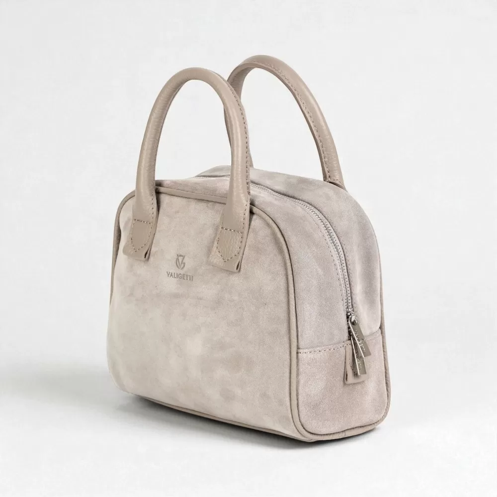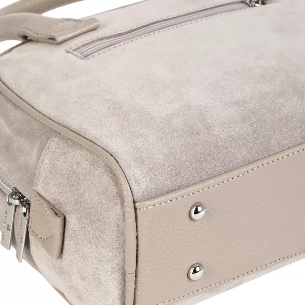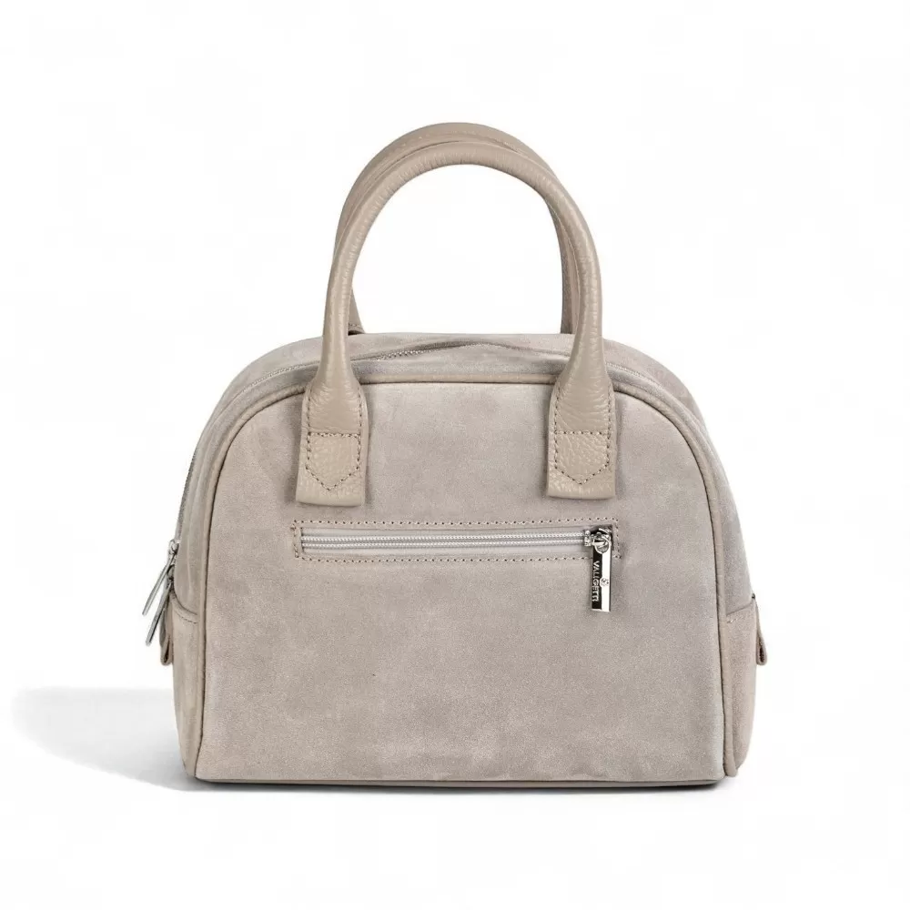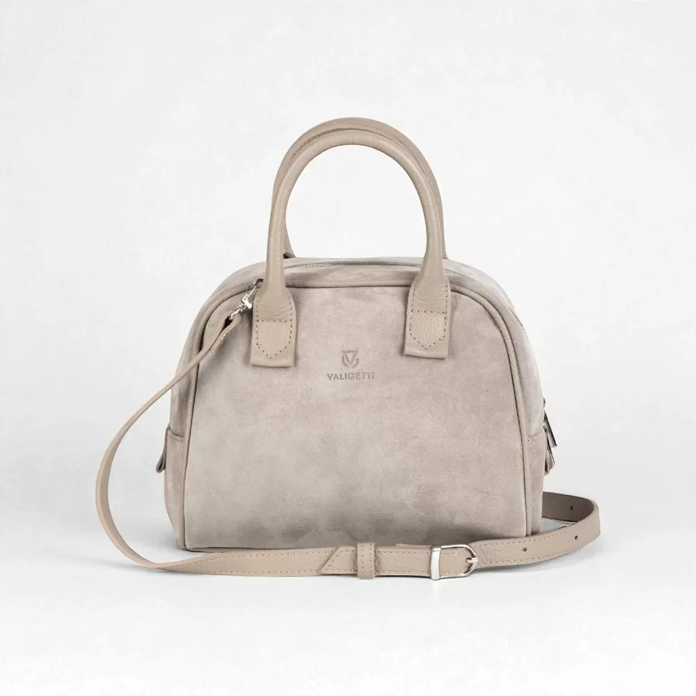 Сумка из натуральной замши Valigetti. Особенности: основное отделение на молнии, регулируемый плечевой ремень, один внешний карман на молнии.