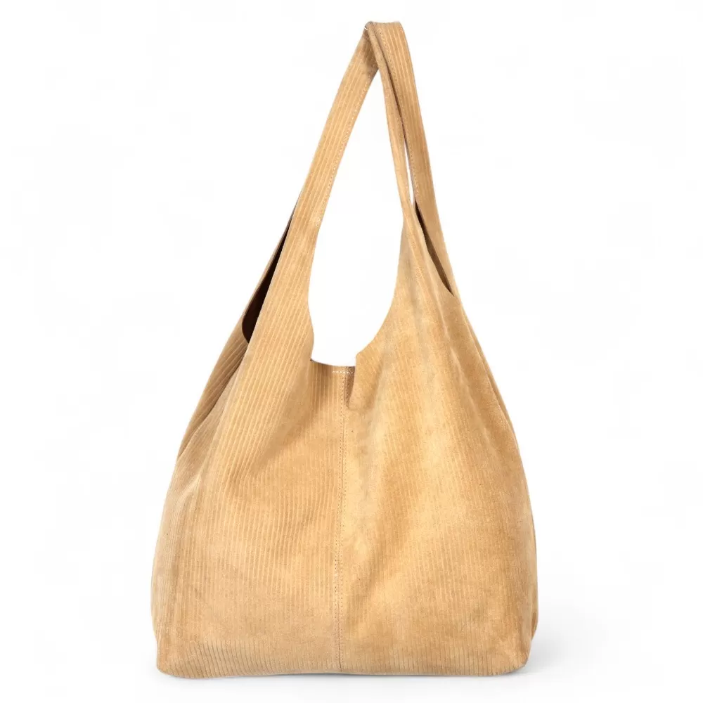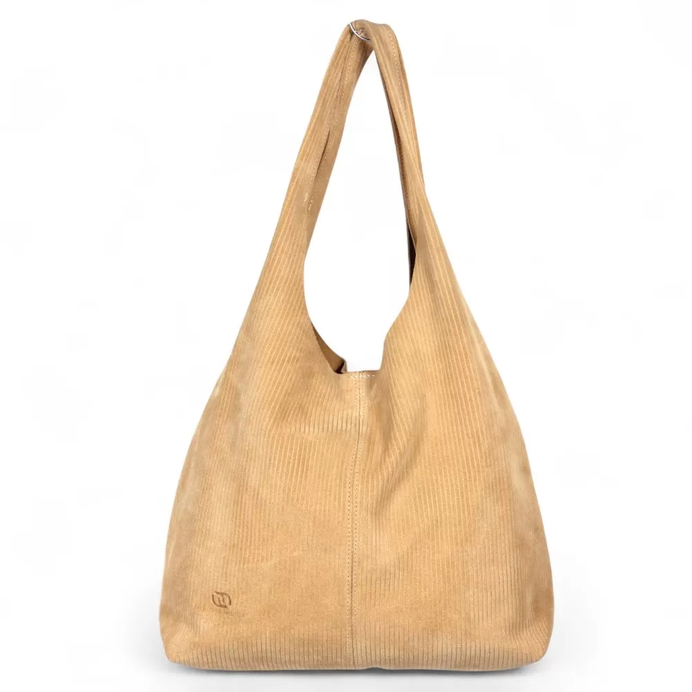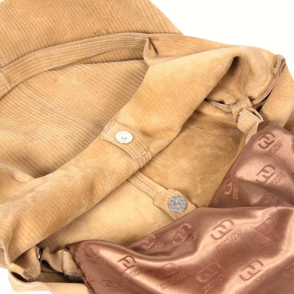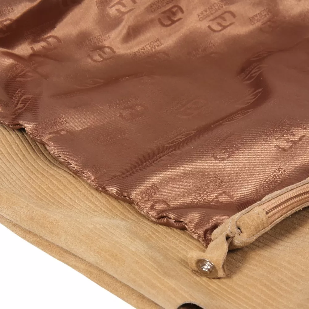 Сумка-мешок из натуральной замши от бренда Francesco Molinary выполнена в бежевом цвете. У сумки есть основное отделение с магнитной застёжкой и внутренний карман на молнии.