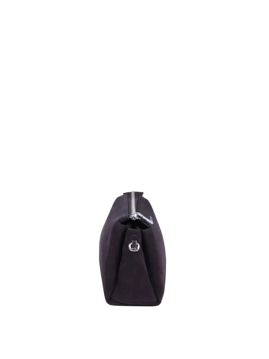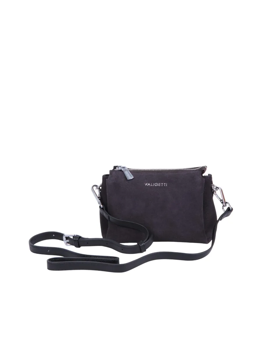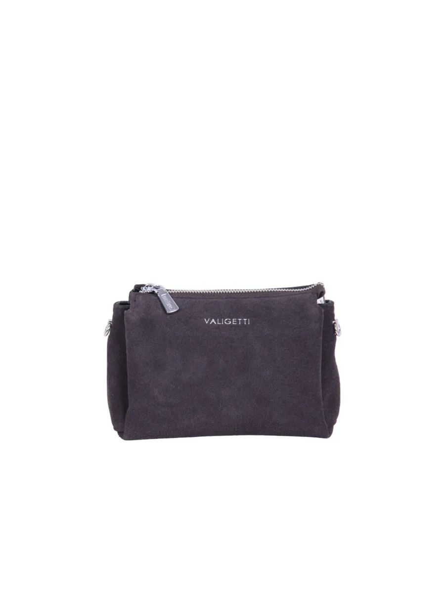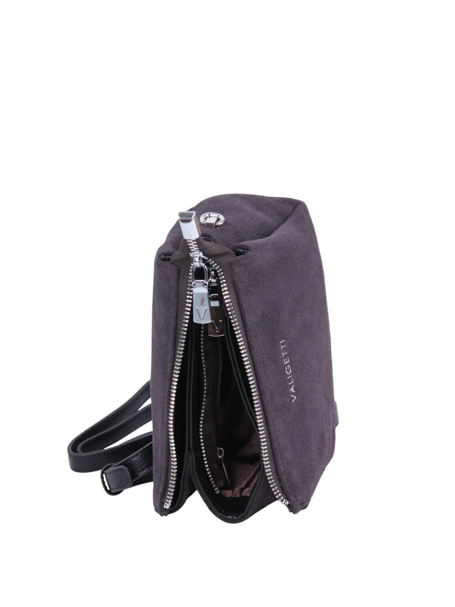 Сумка от бренда Valigetti выполнена из натуральной замши в темно-сером цвете. Модель со съемным регулируемым плечевым ремнем, три отделения на молнии, внутри: фирменная текстильная подкладка, накладной открытый карман, карман на молнии. Дно оснащено металлическими ножками для защиты от износа.