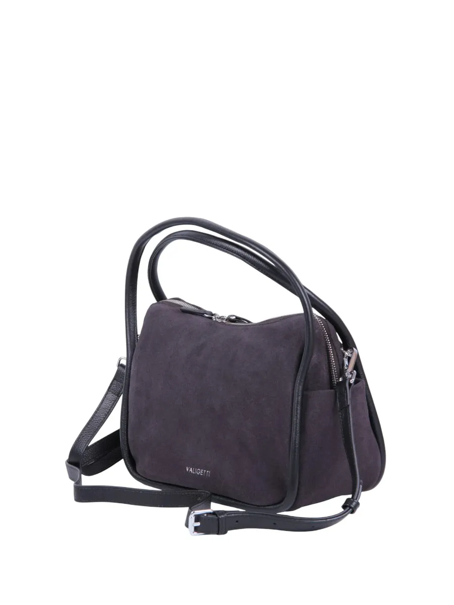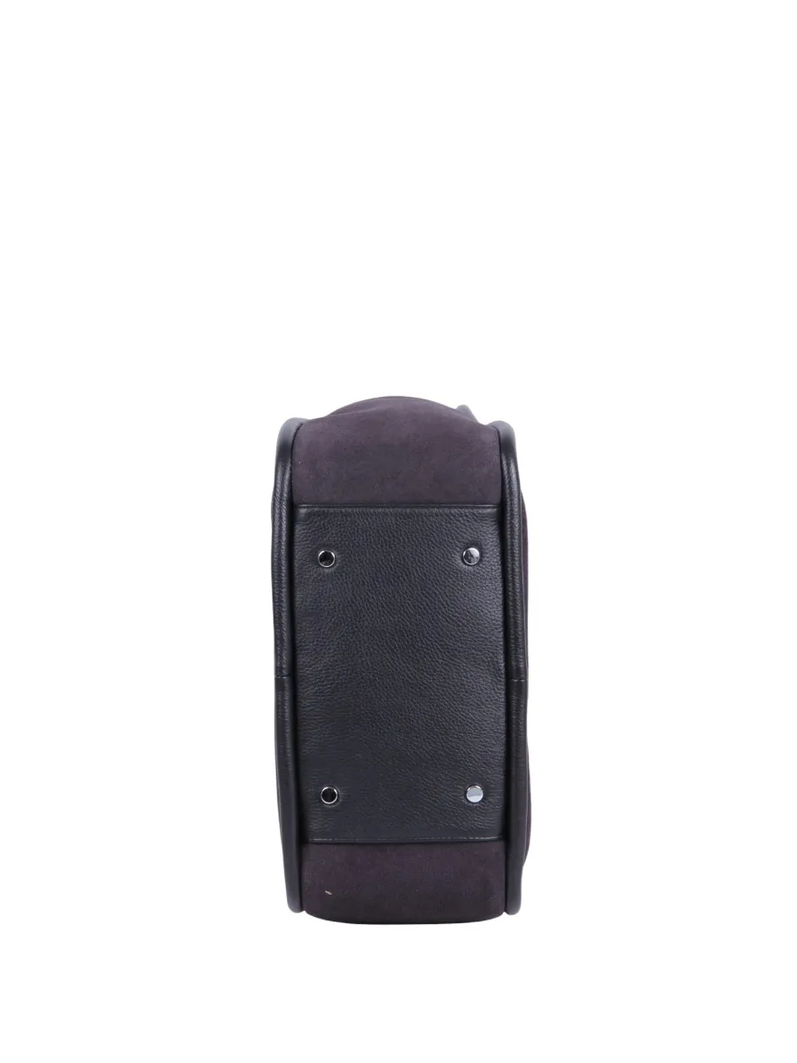 Сумка от бренда Valigetti выполнена из натуральной замши в темно-сером цвете. Вместительная модель с двумя ручками и съемным регулируемым плечевым ремнем. Отделение на молнии. Внутри: фирменная подкладка, карман на молнии, накладной карман. Дно оснащено металлическими ножками для защиты от износа.
