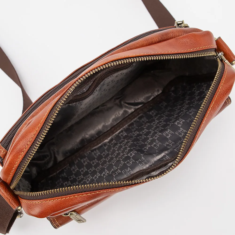 Сумка-планшет от торговой марки Francesco Molinary из качественной натуральной кожи коричневого цвета. Модель с несъемным регулируемым плечевым ремнем, выполненным из текстильного материала. Отделение на молнии. Внутри: фирменная подкладка, карман на молнии. На лицевой стороне – два кармана с клапаном на кнопках, карман на молнии. На задней стороне – карман на молнии.