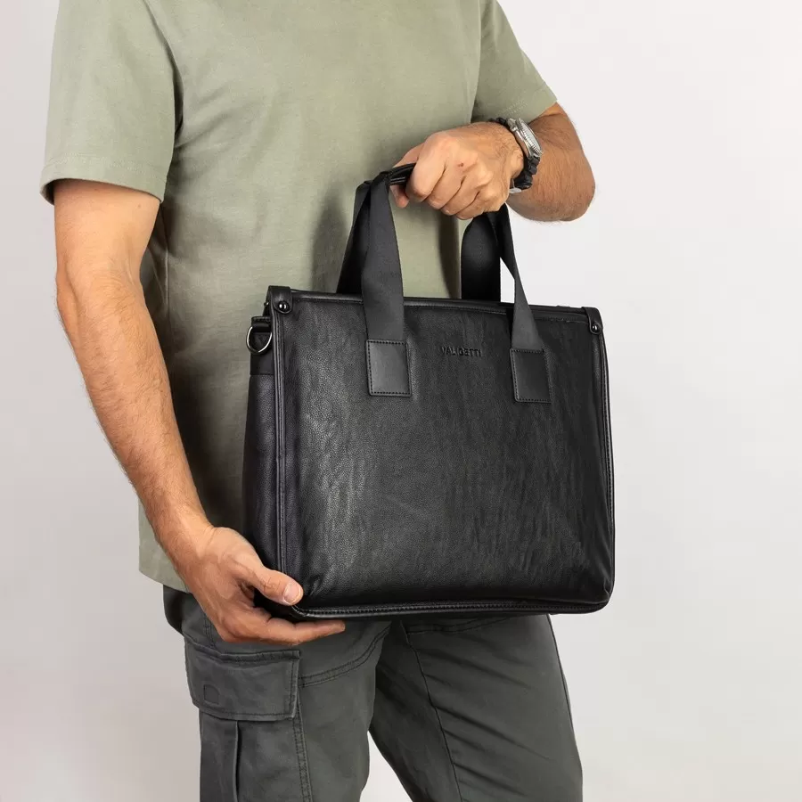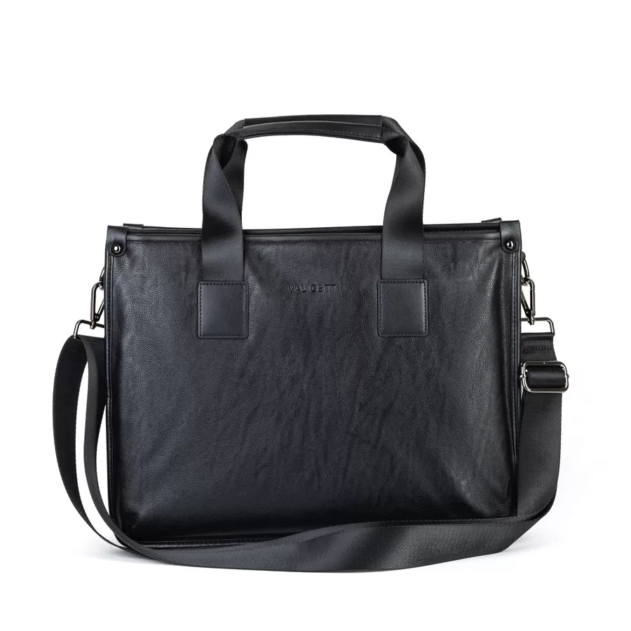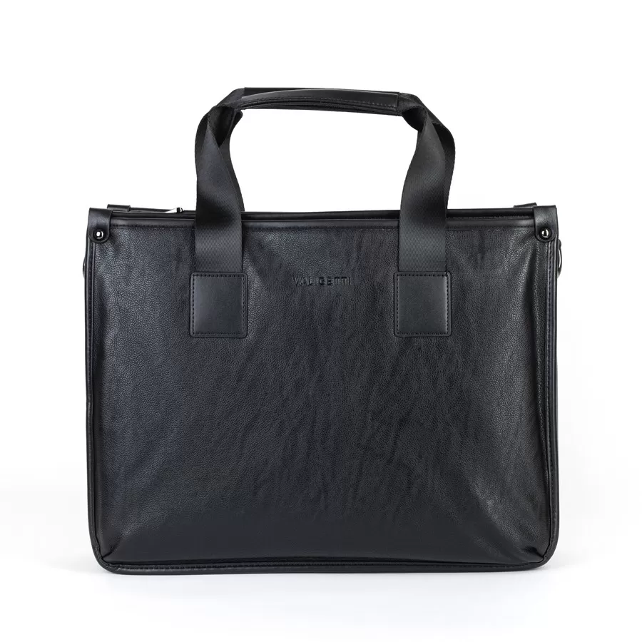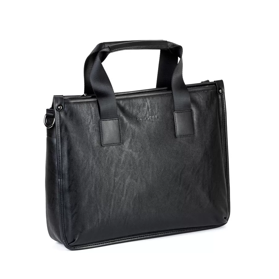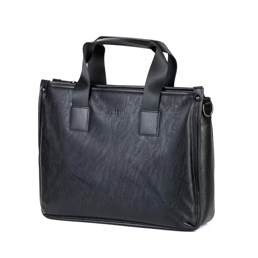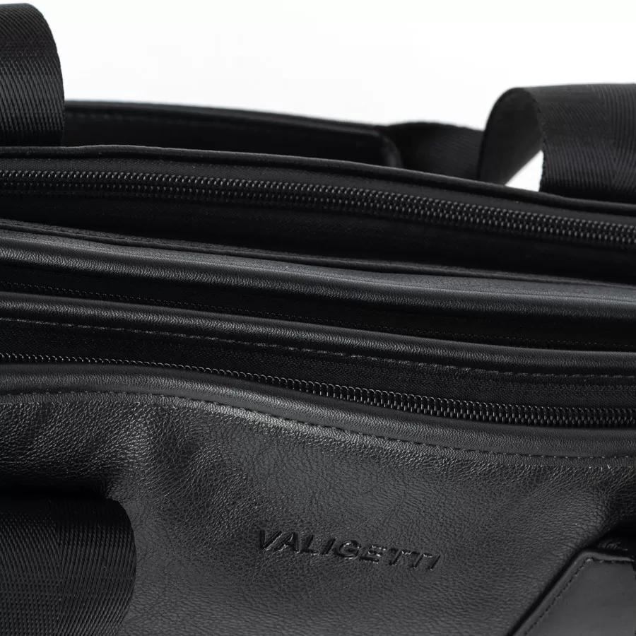 Мужская деловая сумка бренда Valigetti из искусственной кожи с зерненной структурой. Прошита фирменной подкладочной тканью. Имеет вшитые ручки из кожи и текстиля. Внутри 3 отделения на молнии, карман на молнии и кармашек для мелких вещей. В комплект входит прицепной плечевой ремень