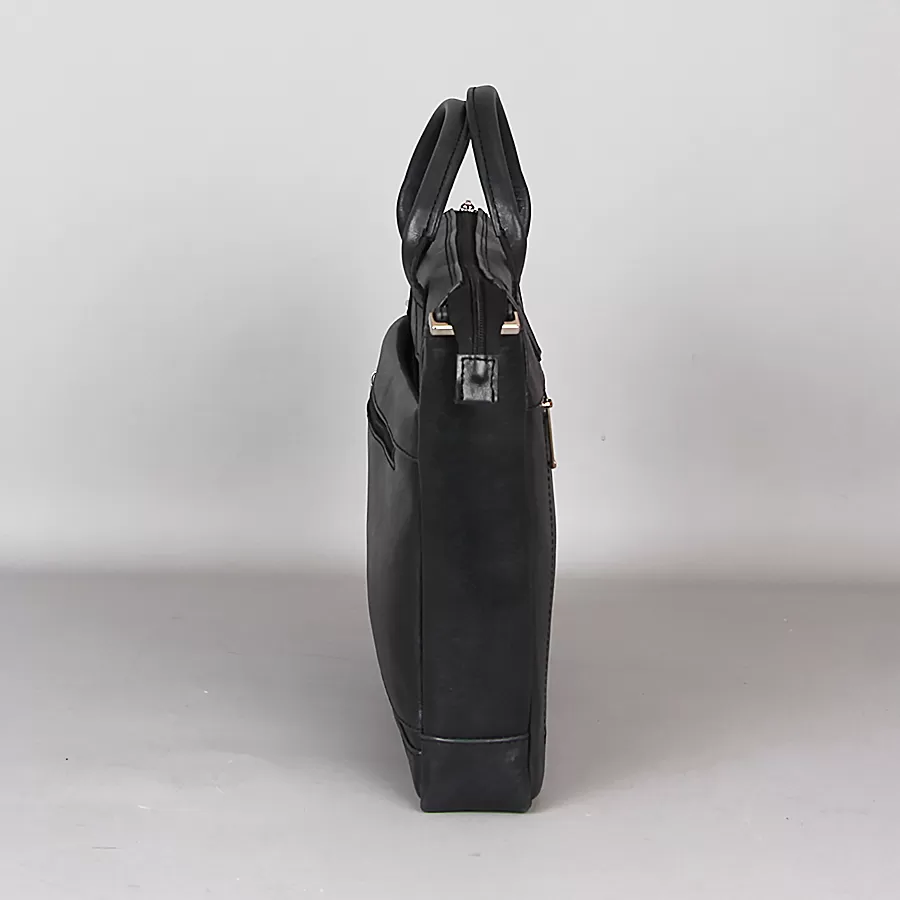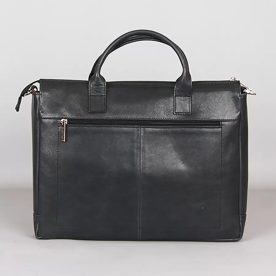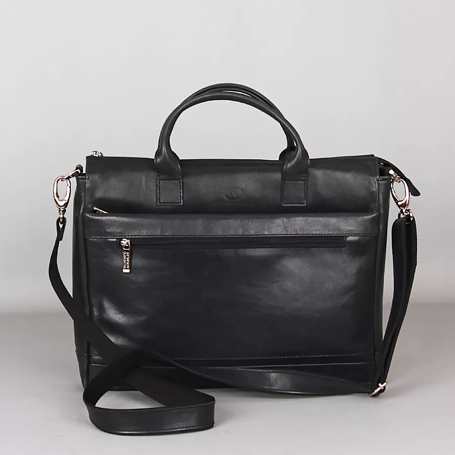 - Функционал деловой сумки значительно расширен за счет внешних карманов. Вы сможете расположить документы формата А5 и А4 во внешнем отделении на молнии