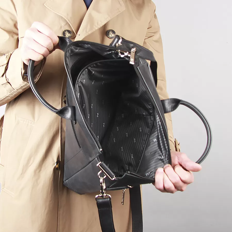- Кроме ноутбука, сумка свободно вмещает в себя документы, зонт