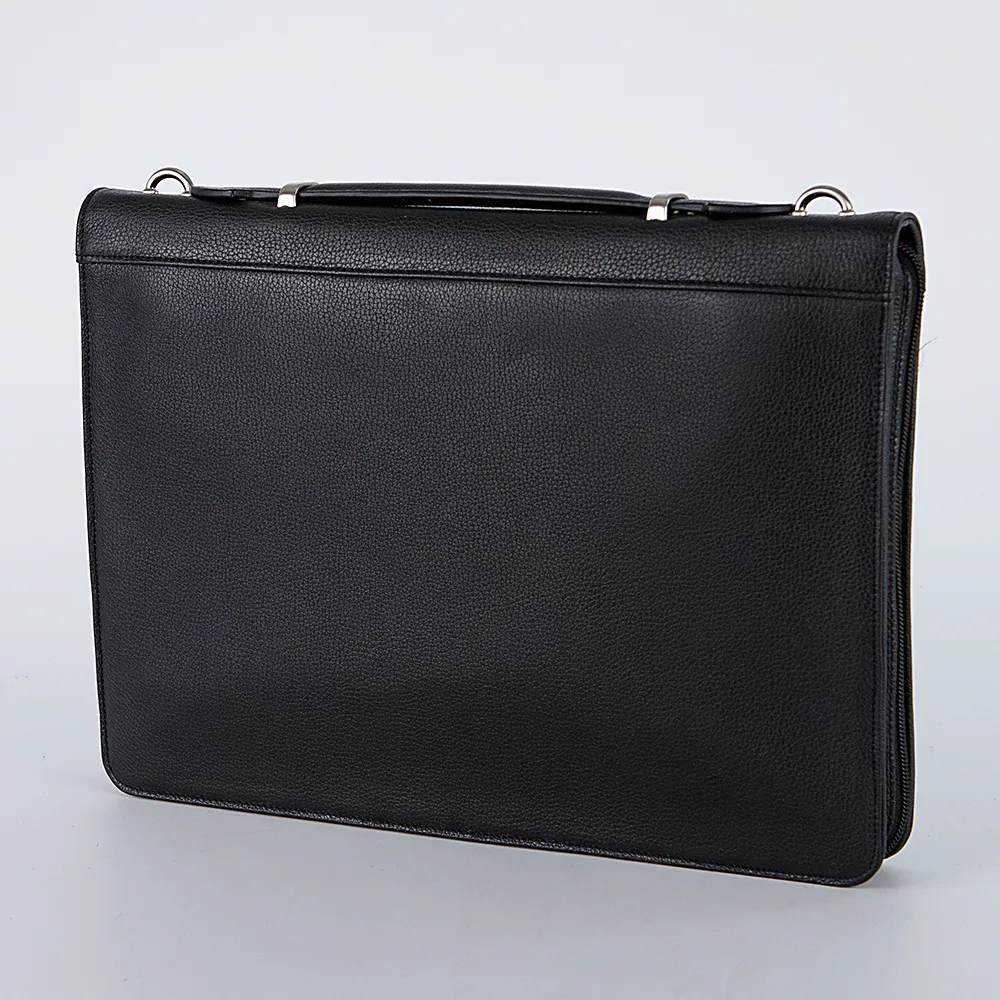 Деловая папка от Francesco Molinary выполнена из натуральной кожи в чёрном цвете. Оснащена плечевым ремнем и ручкой для переноски. Застёгивается на молнию по трем сторонам. Внутри текстильная подкладка и специализированные карманы.