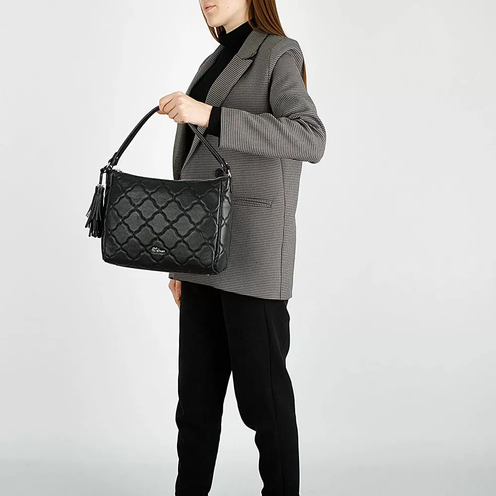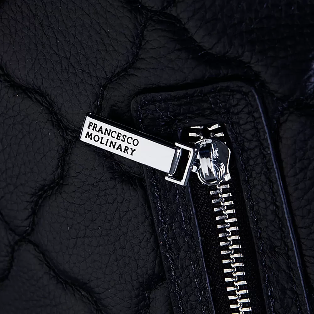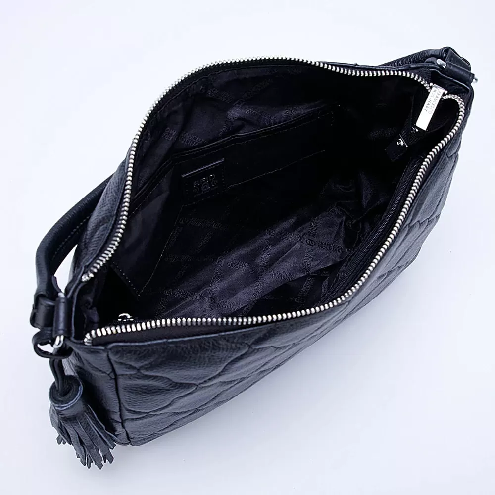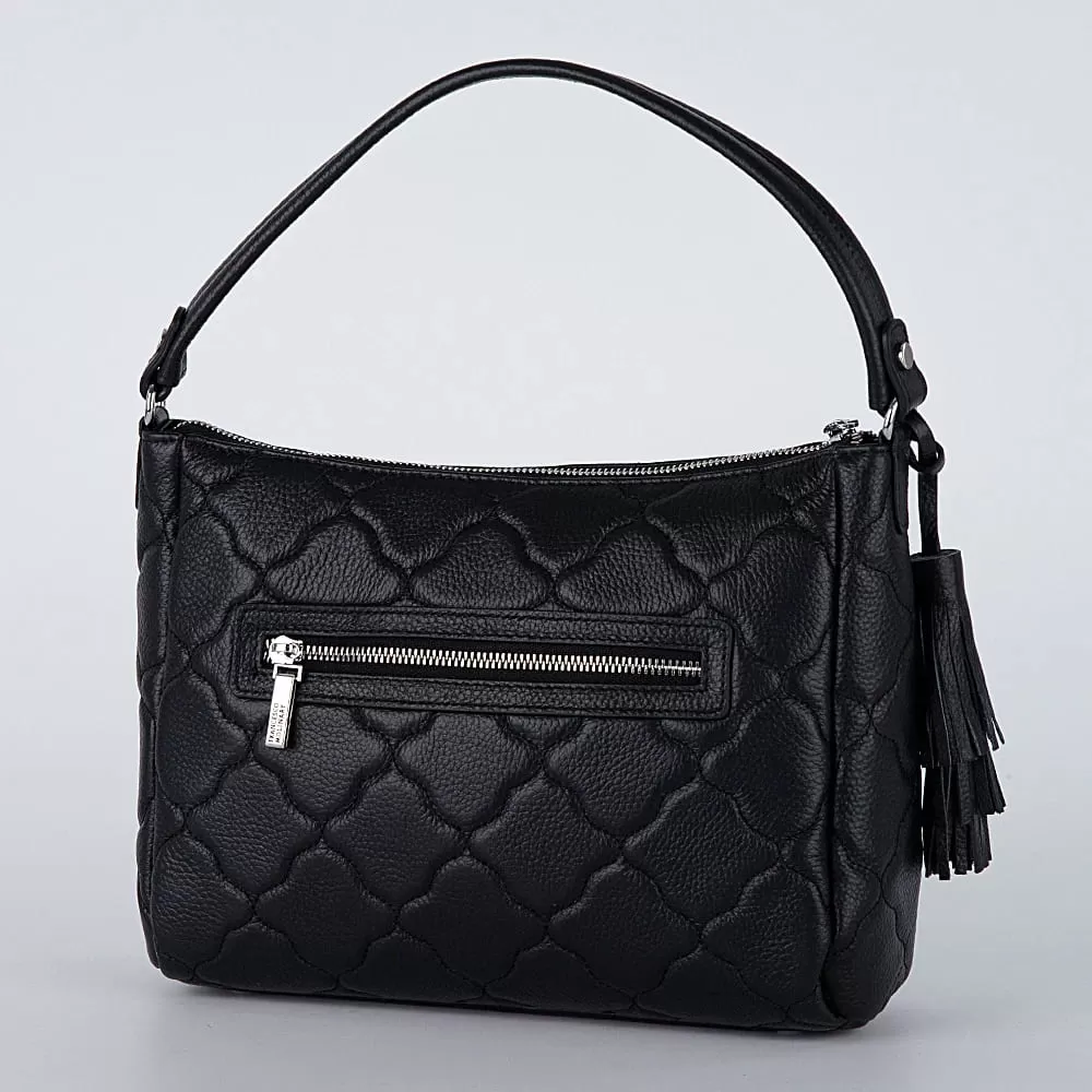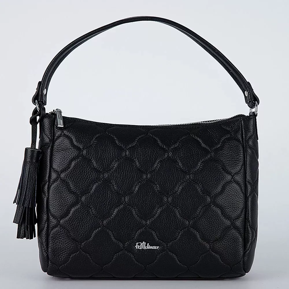 Сумка от Francesco Molinary — это роскошный аксессуар, выполненный из натуральной кожи черного цвета с изящной стежкой, образующей узор. Модель имеет одну ручку, украшенную подвеской с кисточками.