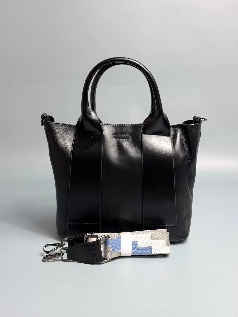 Эта модель оснащена съёмным плечевым ремнём длиной 150 сантиметров и короткими ручками высотой 15 сантиметров. Внутри сумочки есть одно основное отделение и два боковых кармана на магнитных кнопках.