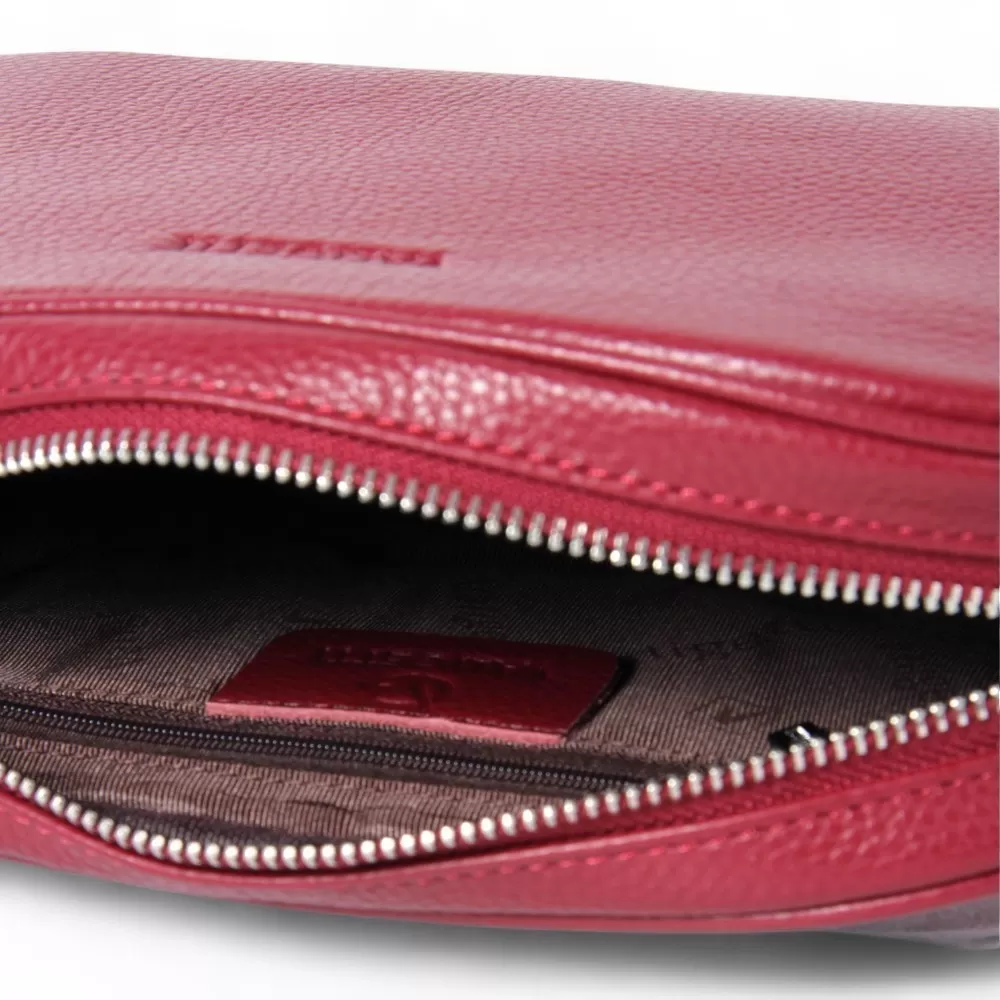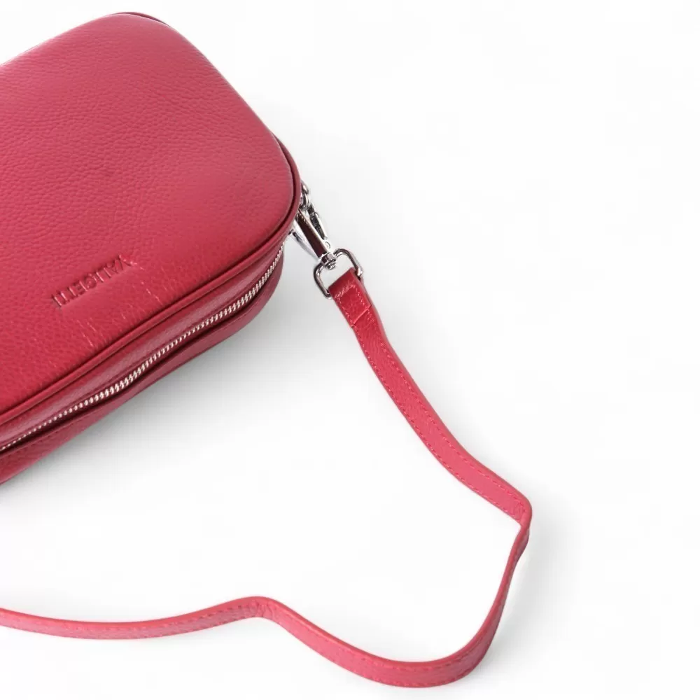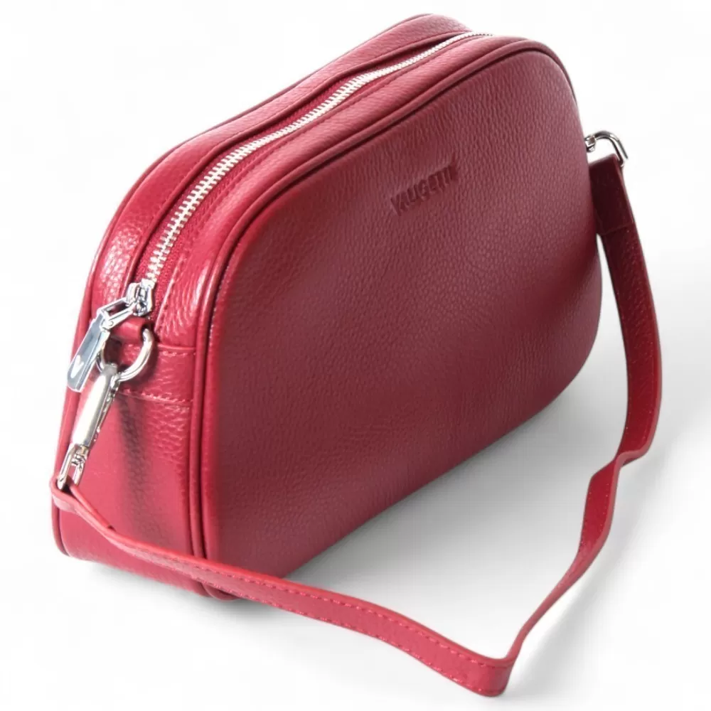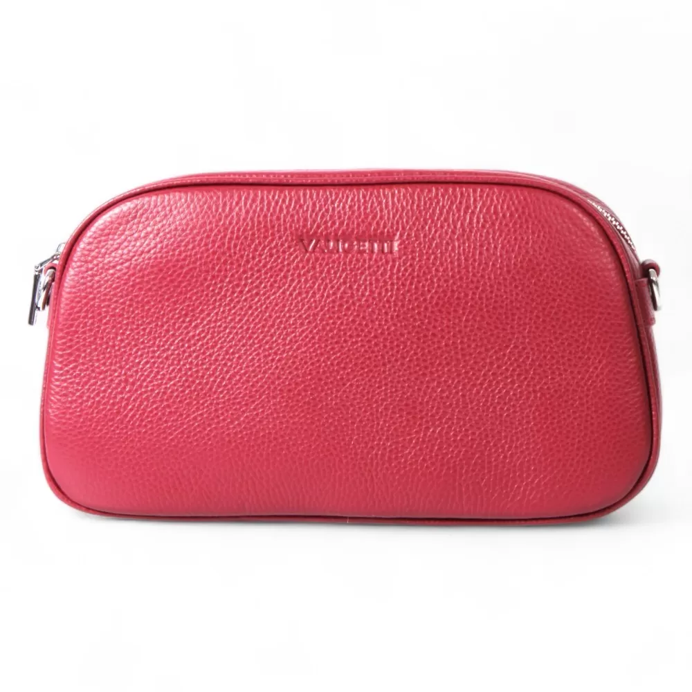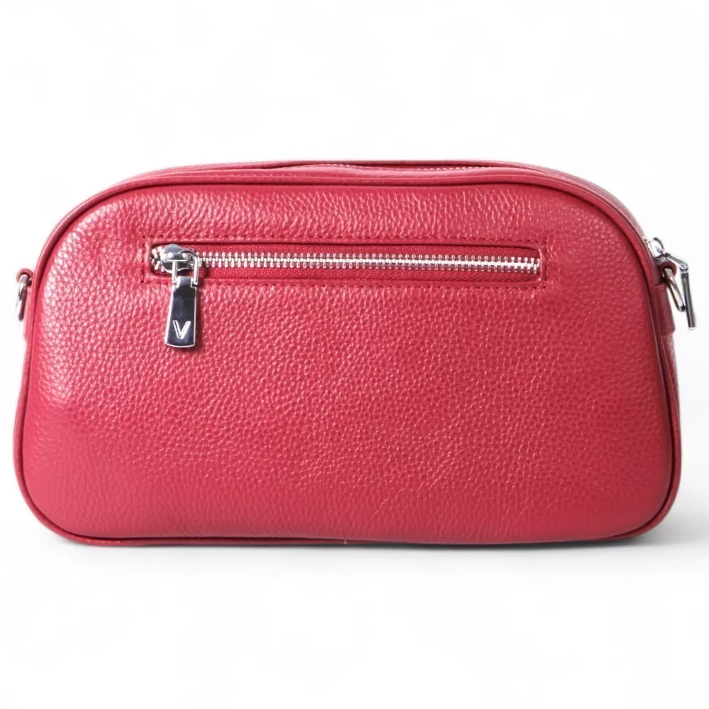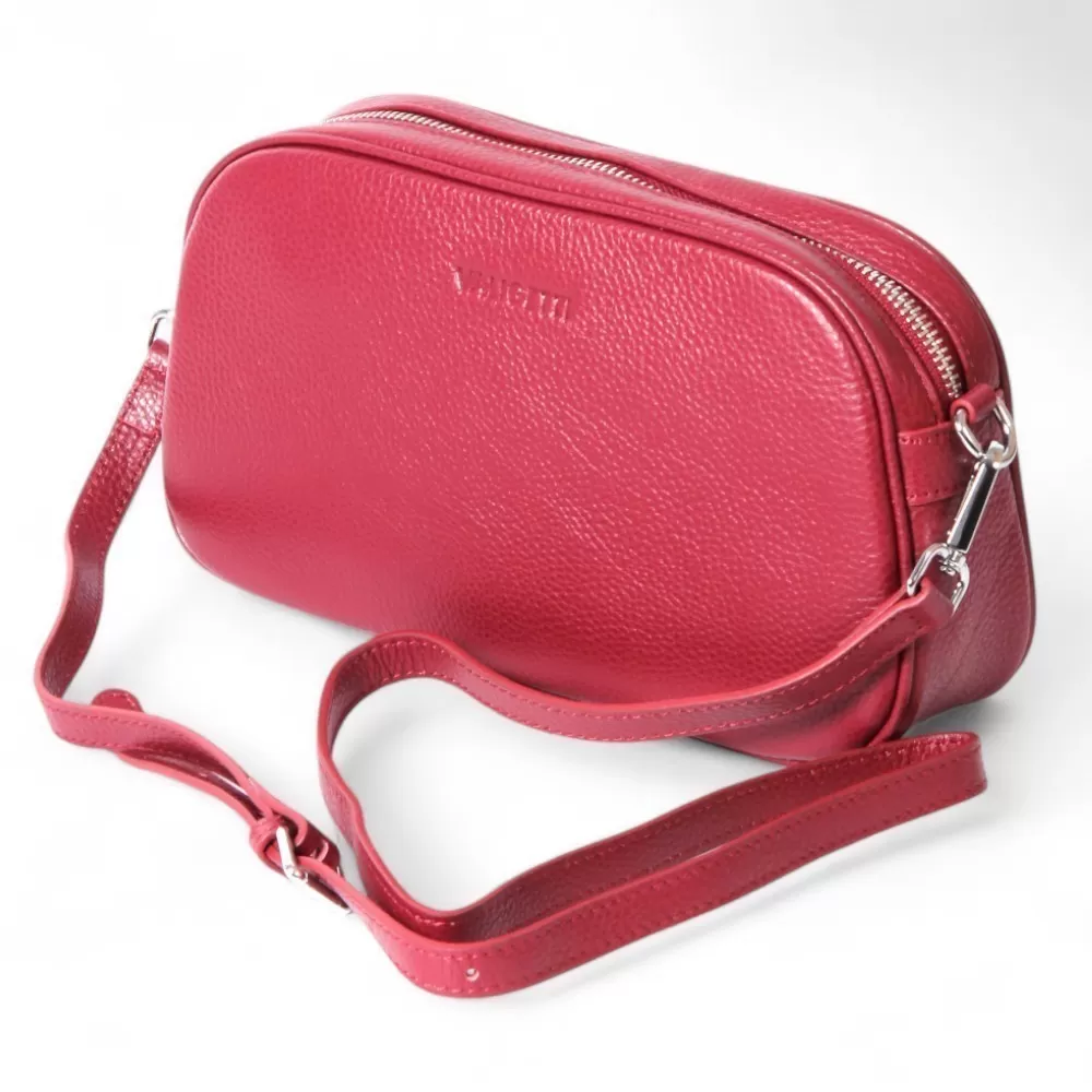 Сумка от бренда Valigetti выполнена из натуральной кожи в бордовом цвете. Эта модель оснащена съемным плечевым ремнем с регулировкой длины. На задней стороне сумки — карман на молнии для быстрого доступа. Основное отделение закрывается на молнию. Внутри — фирменная подкладка. Есть средний карман на молнии и накладной карман.