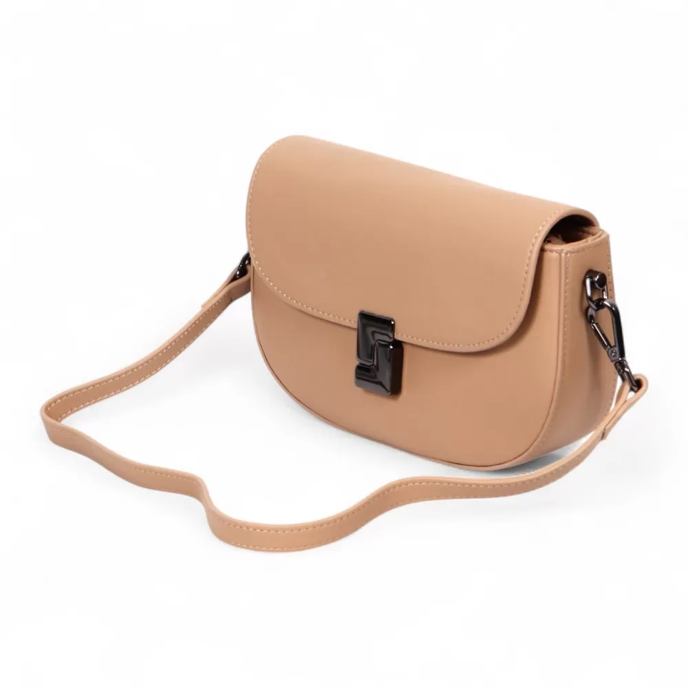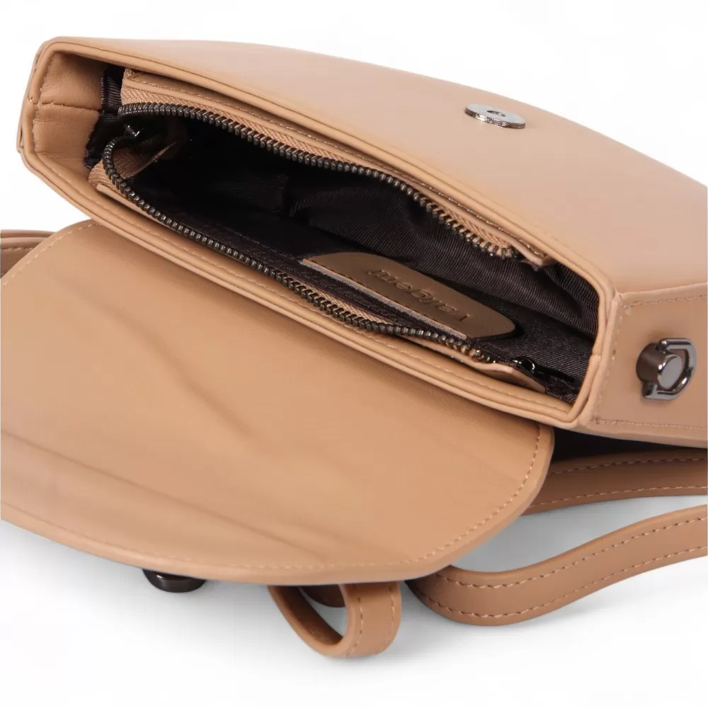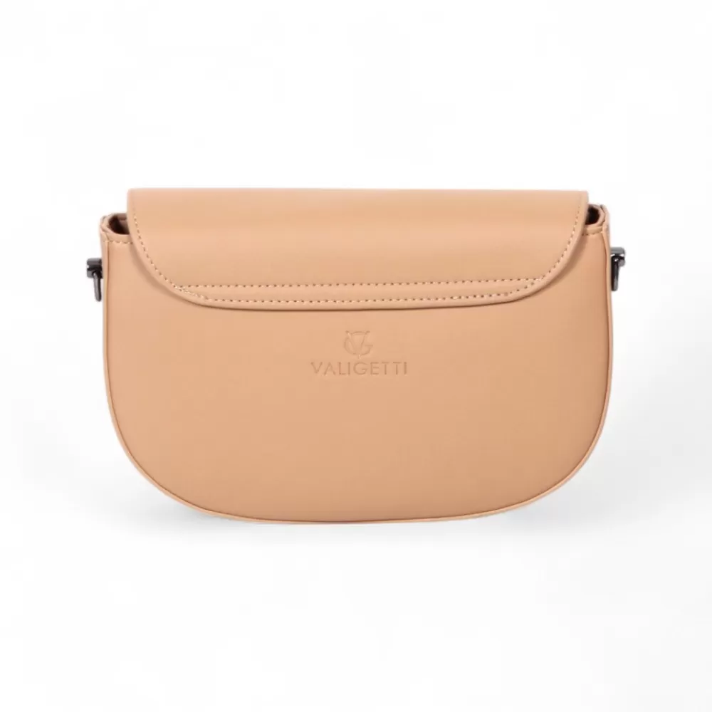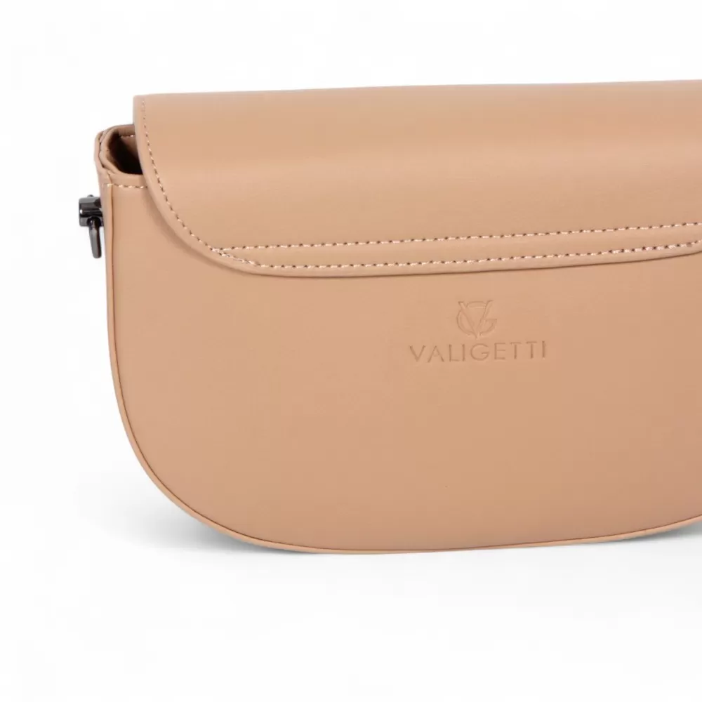 Сумка от бренда Valigetti из натуральной кожи бежевого цвета. Модель со съемным регулируемым плечевым ремнем и съемной ручкой. Закрывается клапаном на магните. Отделение на молнии. Внутри: фирменная подкладка, карман на молнии, накладной карман.