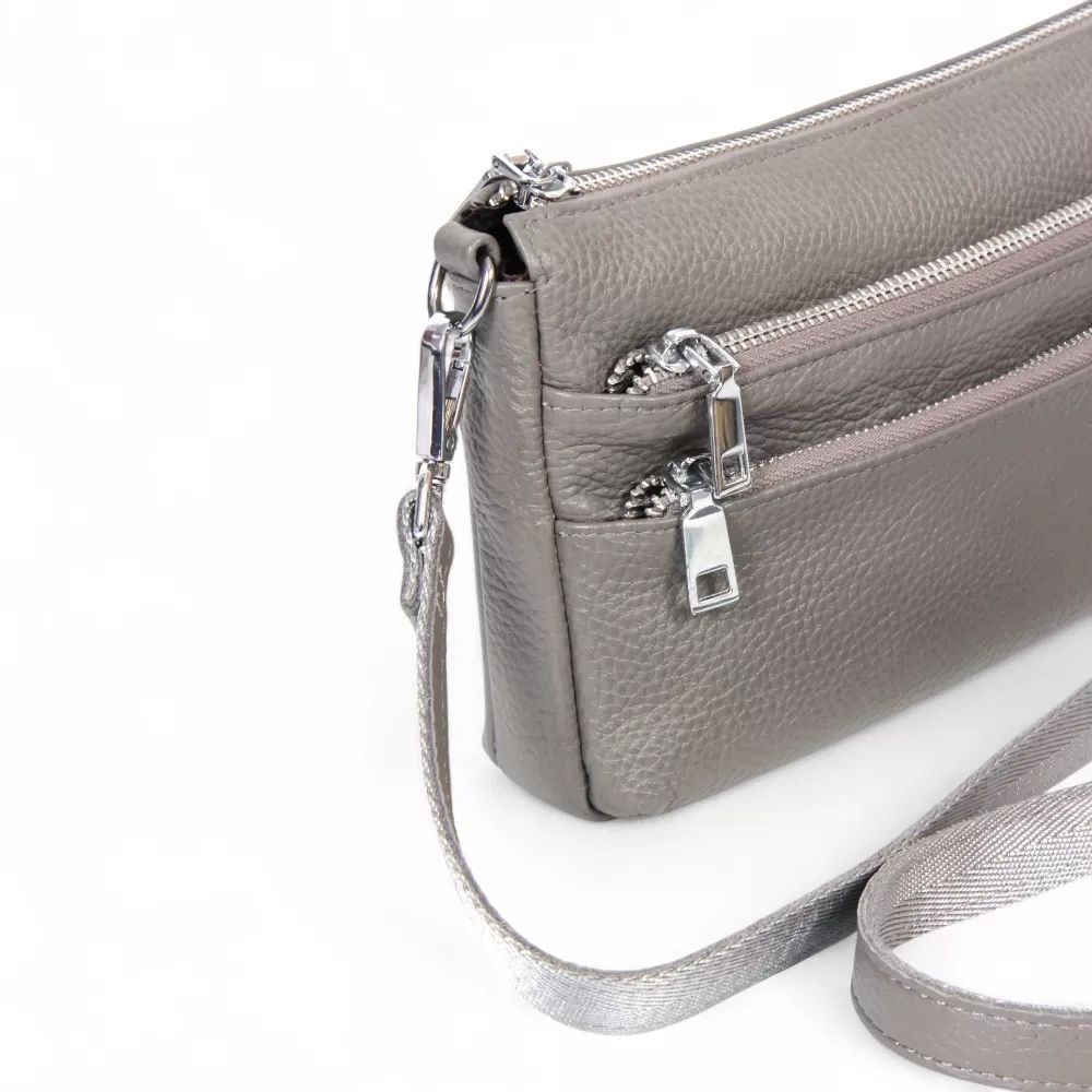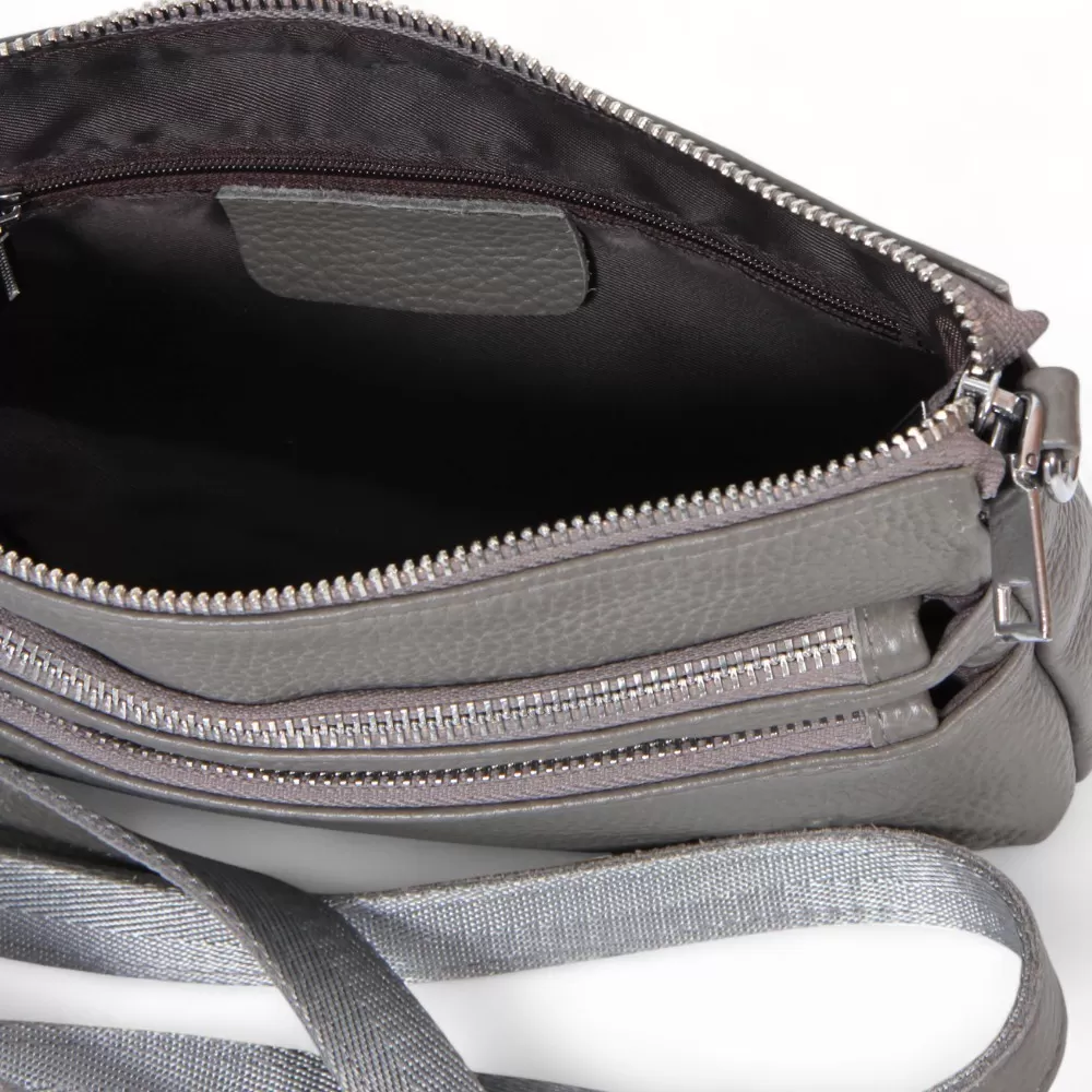 Сумка клатч кросс-боди от бернда Emily выполнена из натуральной кожи в сером цвете. Модель с регулируемым плечевым ремнем. На лицевой стороне два кармана на молнии. На задней — карман быстрого доступа. Внутри одно основное отделение на молнии: текстильная подкладка и карман на молнии.