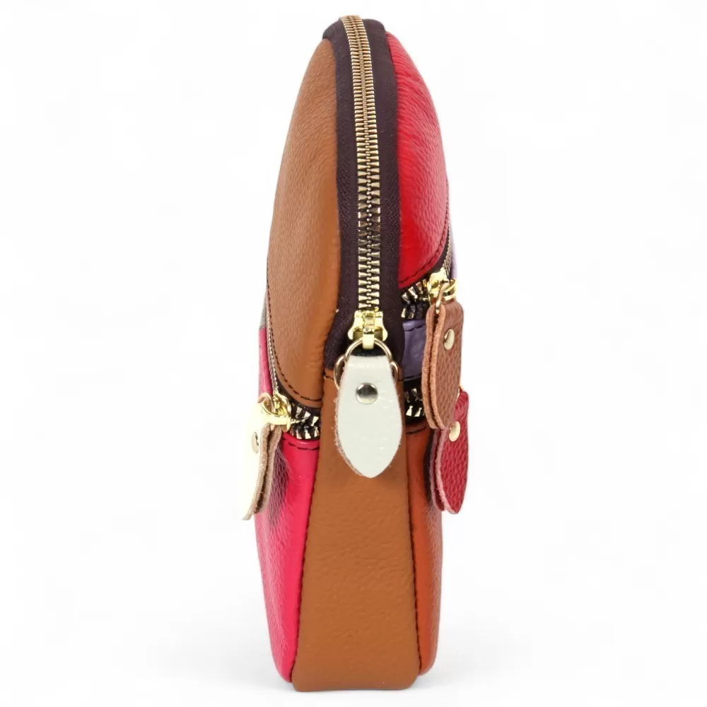 Сумка от бренда Poshete из натуральной кожи яркой расцветки. Компактная модель вертикальной ориентации со съемным регулируемым плечевым ремнем. Отделение на молнии. Внутри: фирменная подкладка. На лицевой стороне – два кармана на молнии. На задней стороне – карман на молнии.