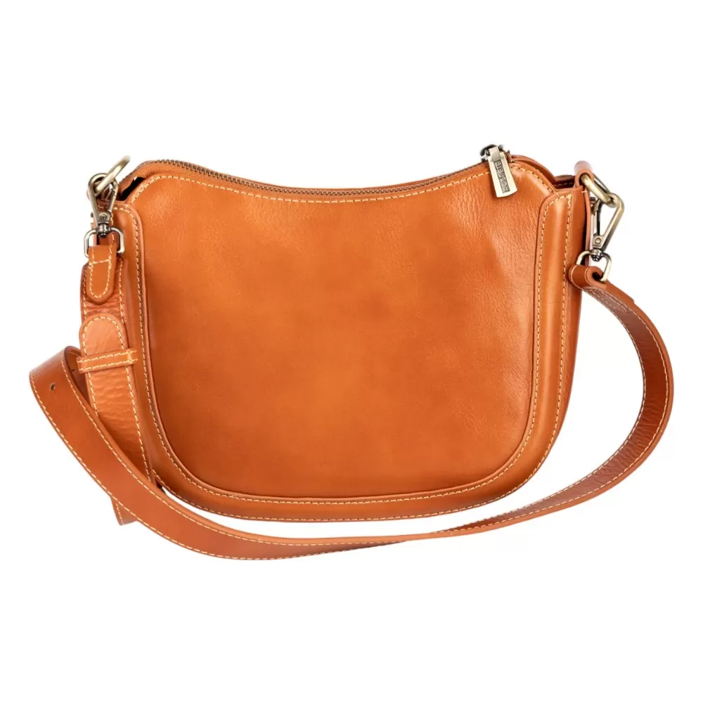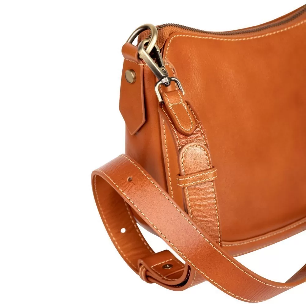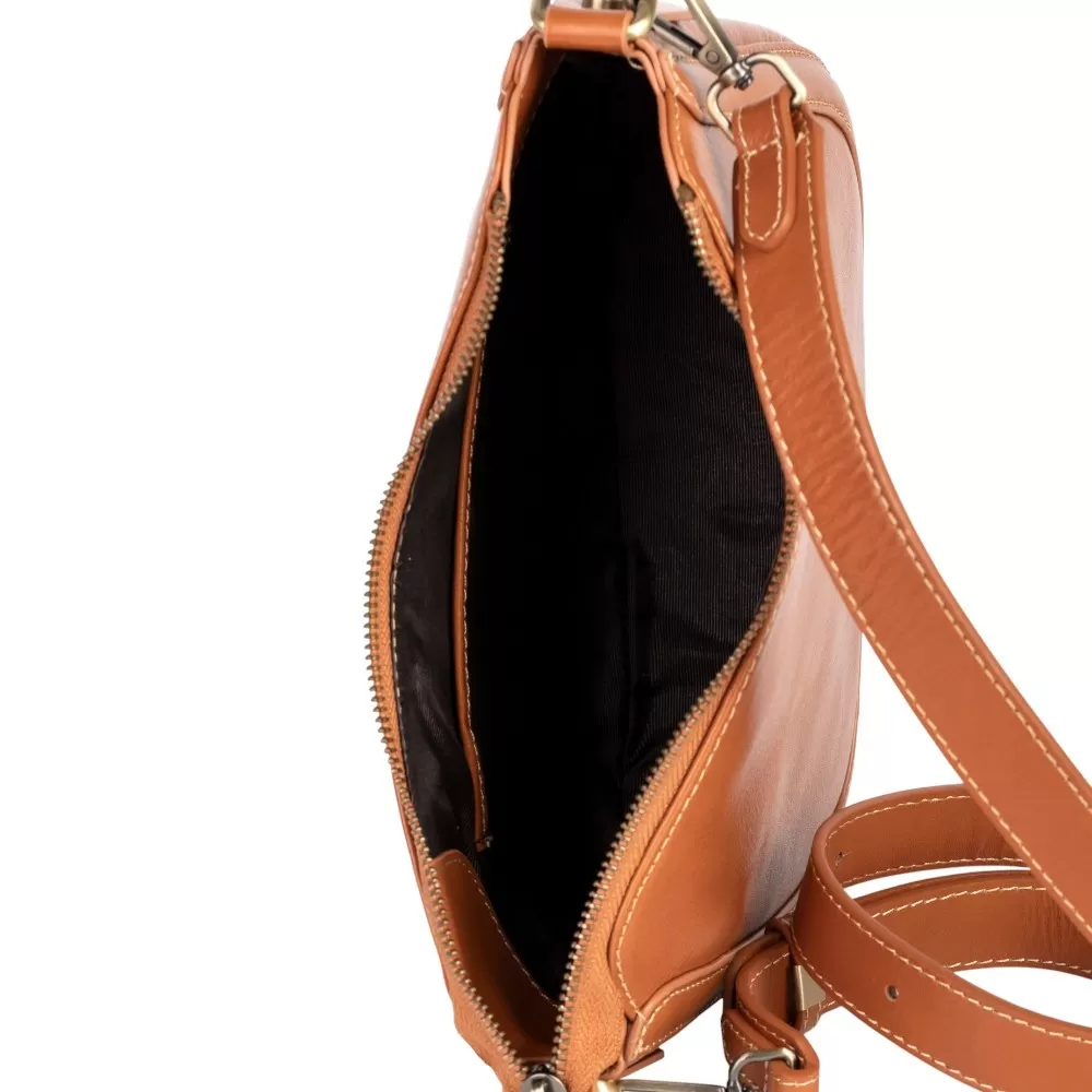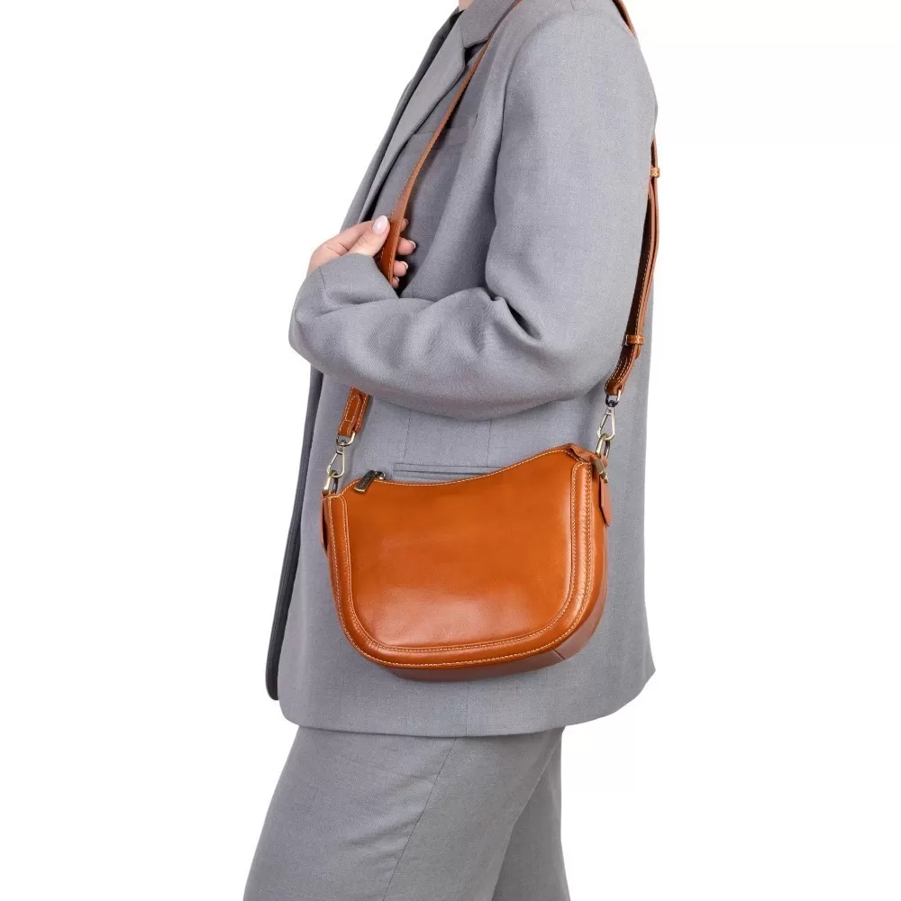 Сумка от бренда Poshete выполнена из натуральной кожи цвета dark camel. Модель оснащена съемным регулируемым плечевым ремнем. Имеется отделение на молнии. Внутри — текстильная подкладка и карман на молнии.