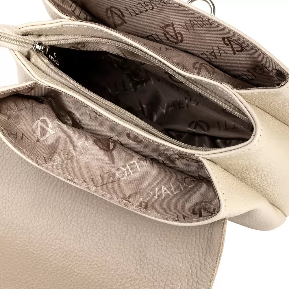Сумка от бренда Valigetti выполнена из натуральной кожи с ручкой на клапане и съемным регулируемым плечевым ремнем. Модель закрывается клапаном на замке-защёлке., три отделения: одно закрывается на молнию, другие два открыты, внутри фирменная текстильная подкладка, накладной карман на молнии. На задней стороне расположен карман быстрого доступа. Дно оснащено металлическими ножками для защиты от износа.