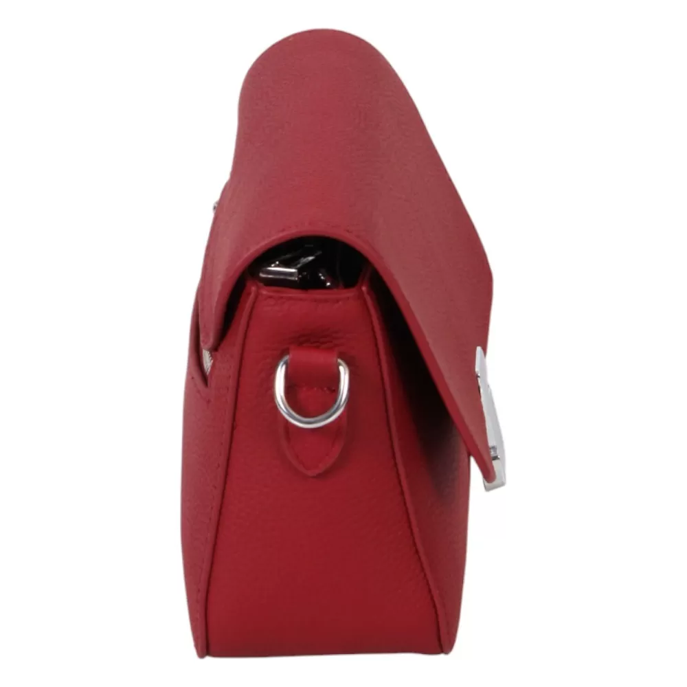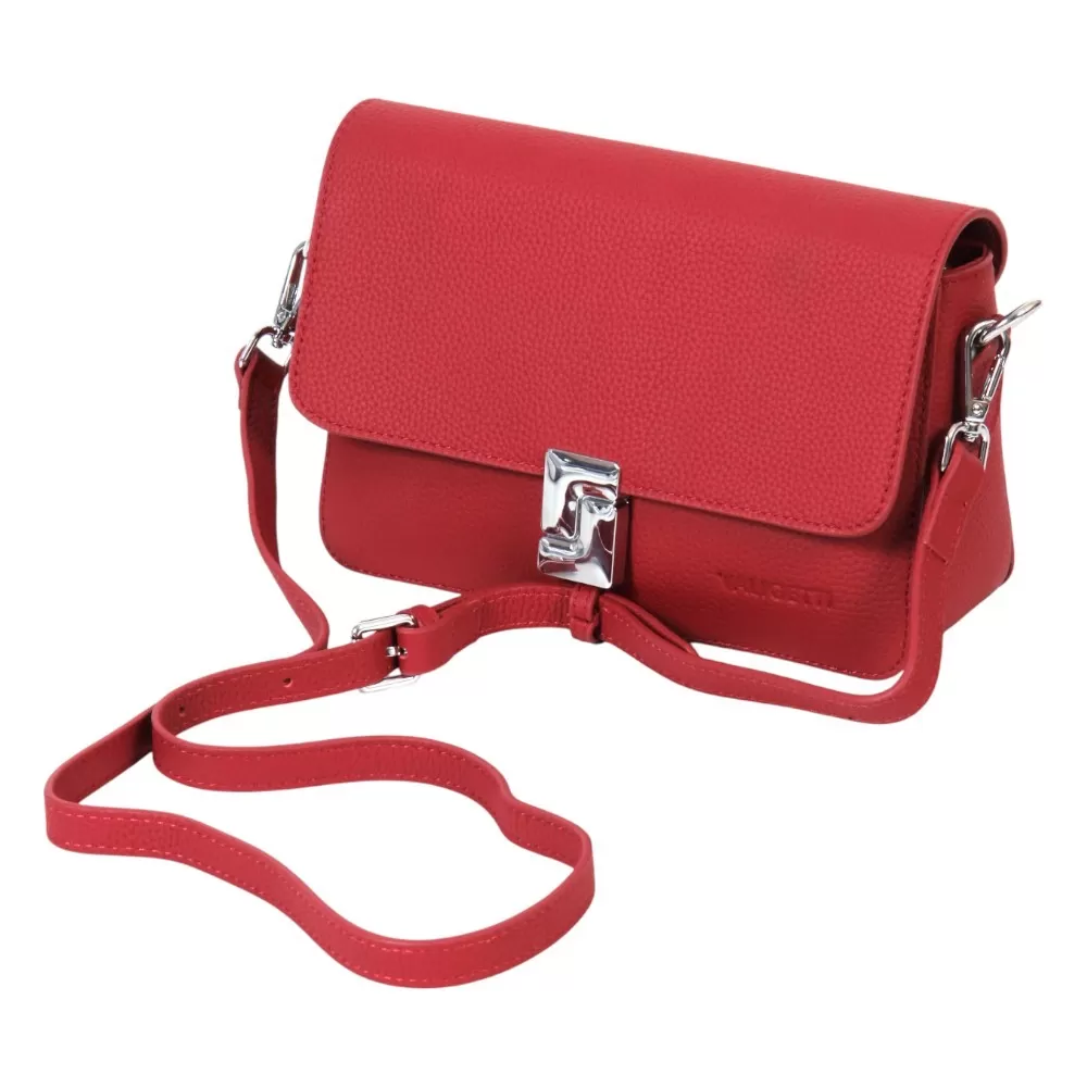 Стильная сумка от бренда Valigetti выполнена из натуральной кожи бордового цвета. Модель со съемным регулируемым плечевым ремнем. Клапан на магнитной кнопке закрывает отделение на молнии. Внутри: текстильная подкладка, карман и средник на молнии. На задней стороне — карман на молнии.