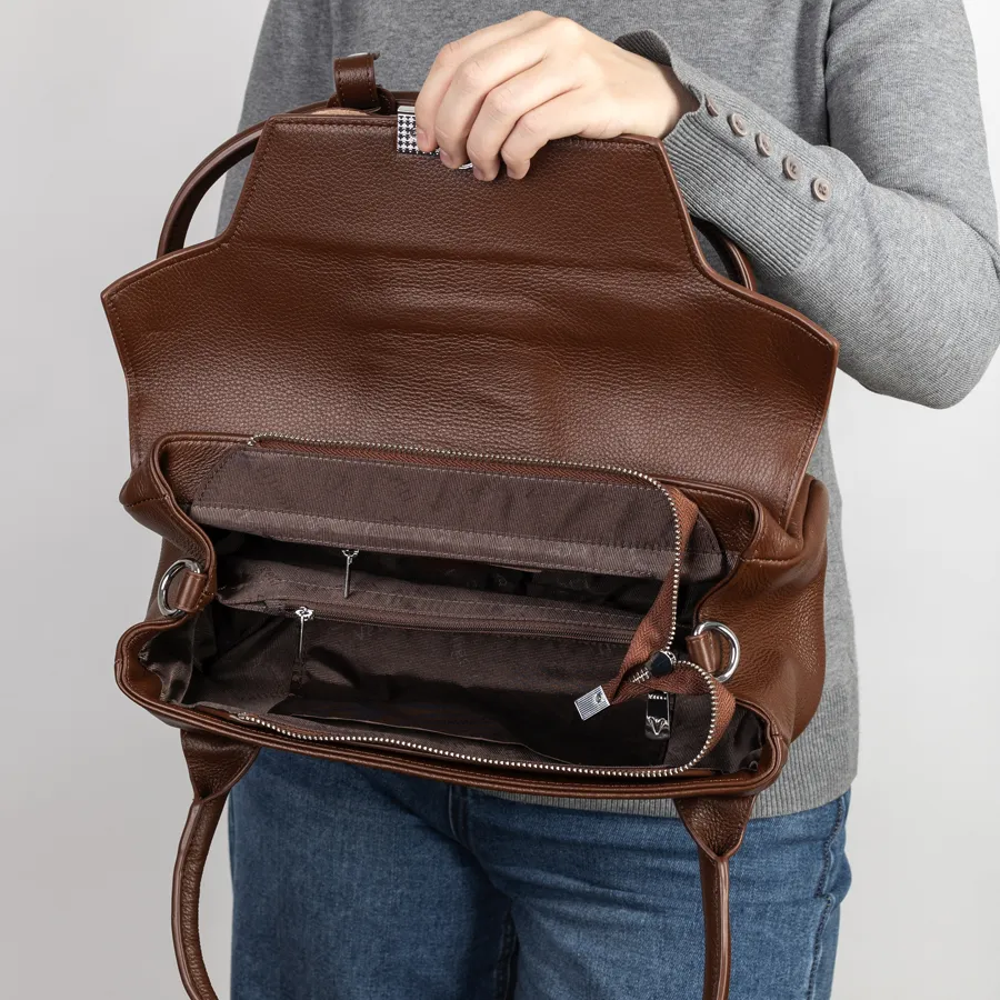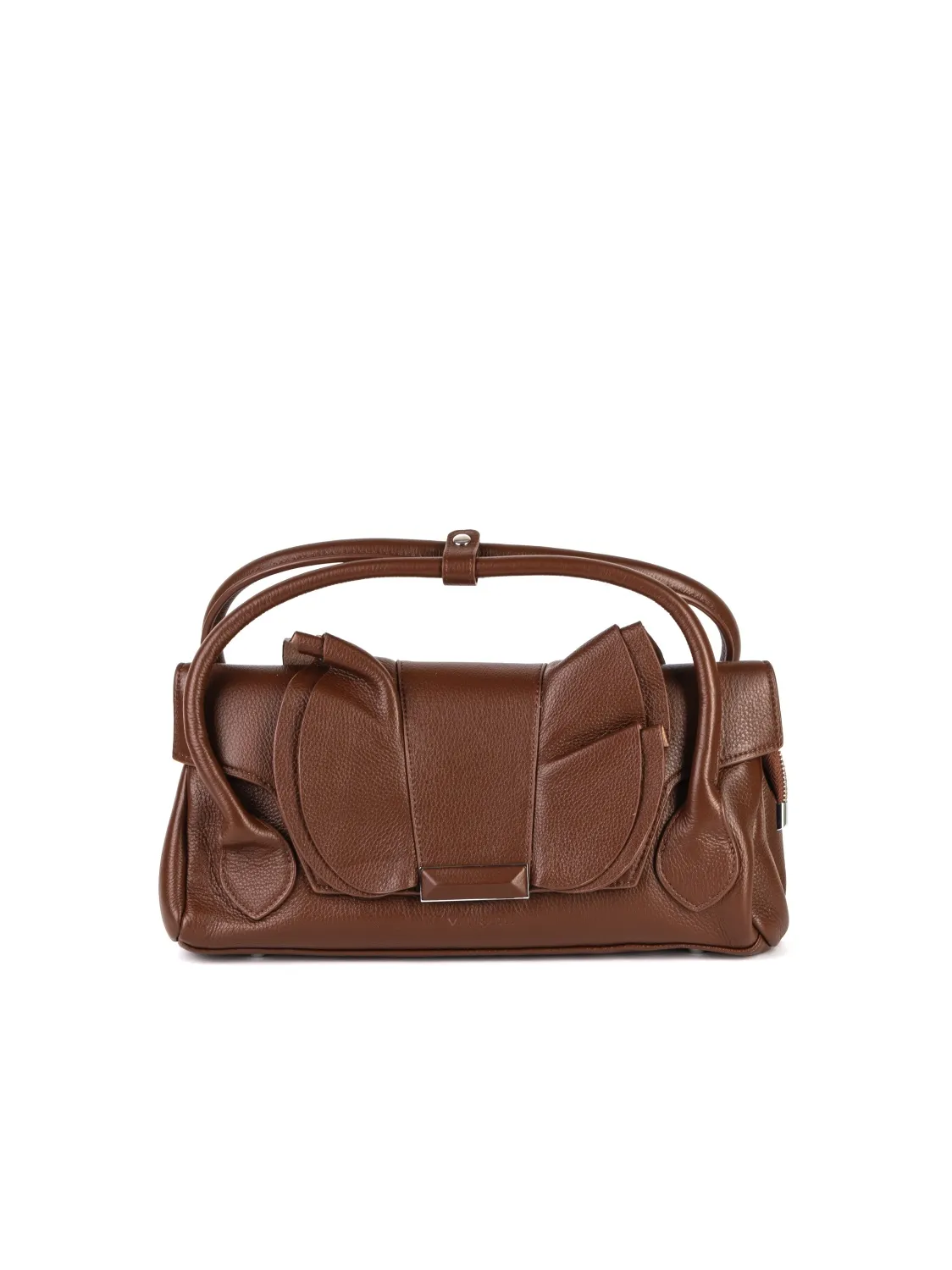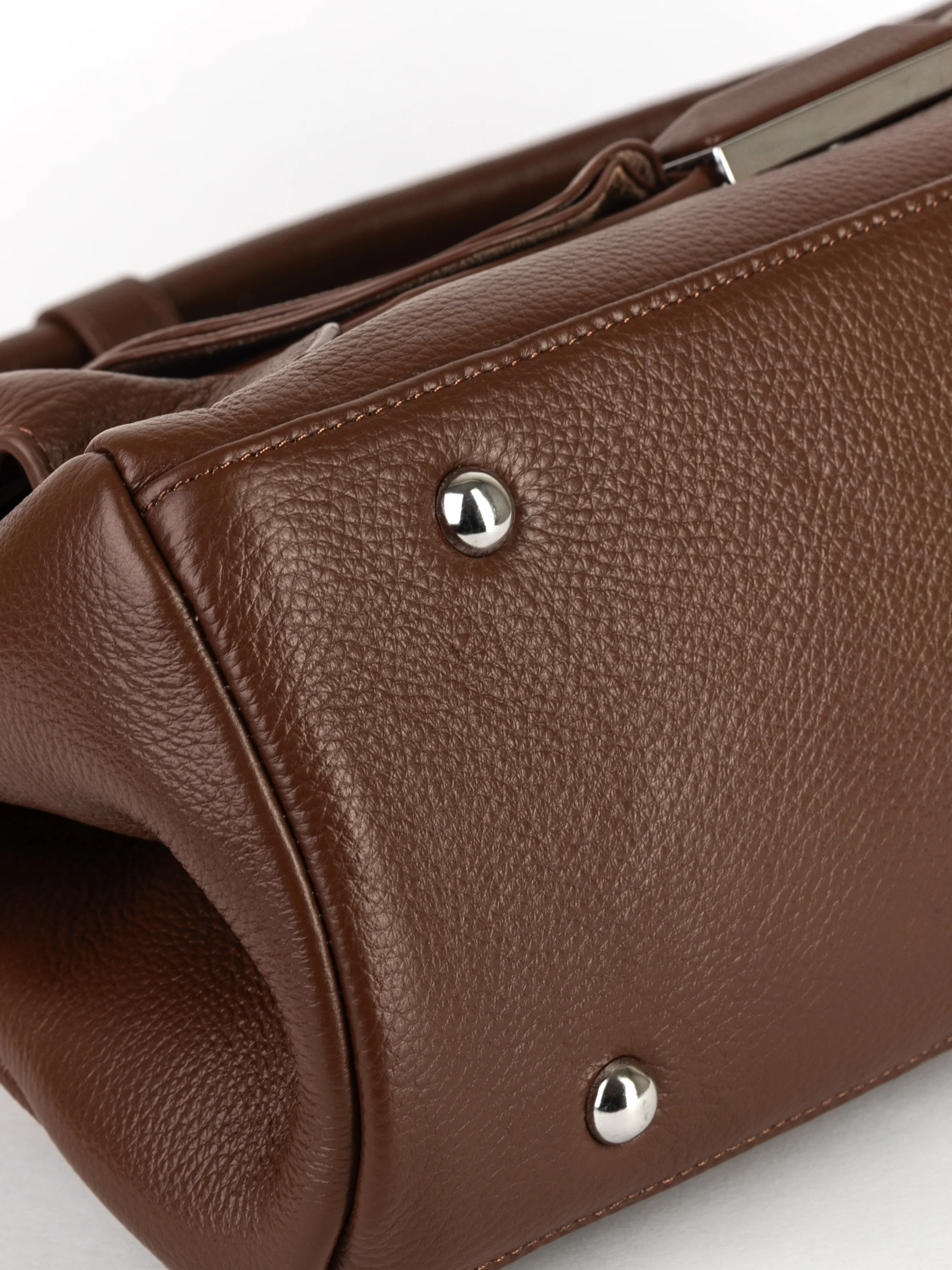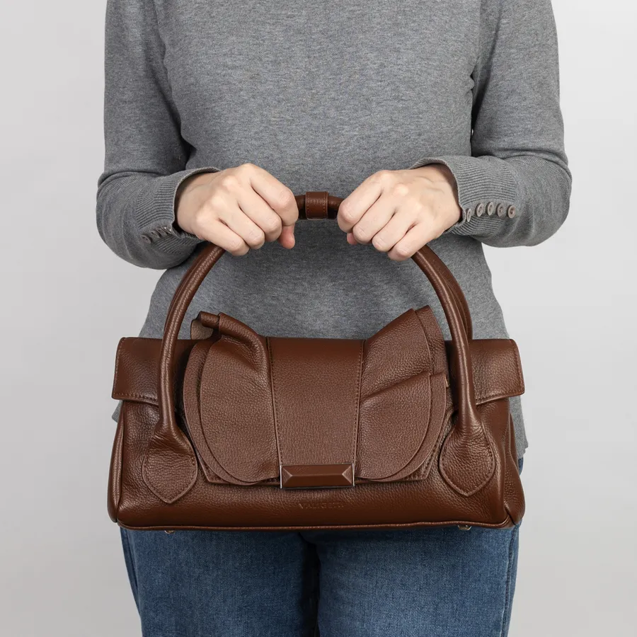 Сумка кросс-боди от торговой марки Valigetti из натуральной зернистой кожи коричнево цвета. Компактная модель, отделение на молнии. Внутри: фирменная подкладка, карман на молнии, накладной карман. На задней стороне – карман на молнии.