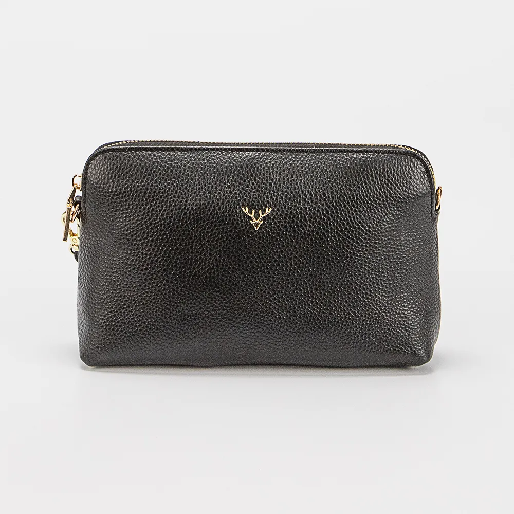 Сумка от торговой марки Poshete из натуральной кожи коричневого цвета. Лицевая сторона с оригинальным декором. Компактная модель со съемным регулируемым плечевым ремнем и ремешком для запястья. Отделение на молнии. Внутри: фирменная подкладка, карман на молнии, накладной карман. На задней стороне – карман на молнии.