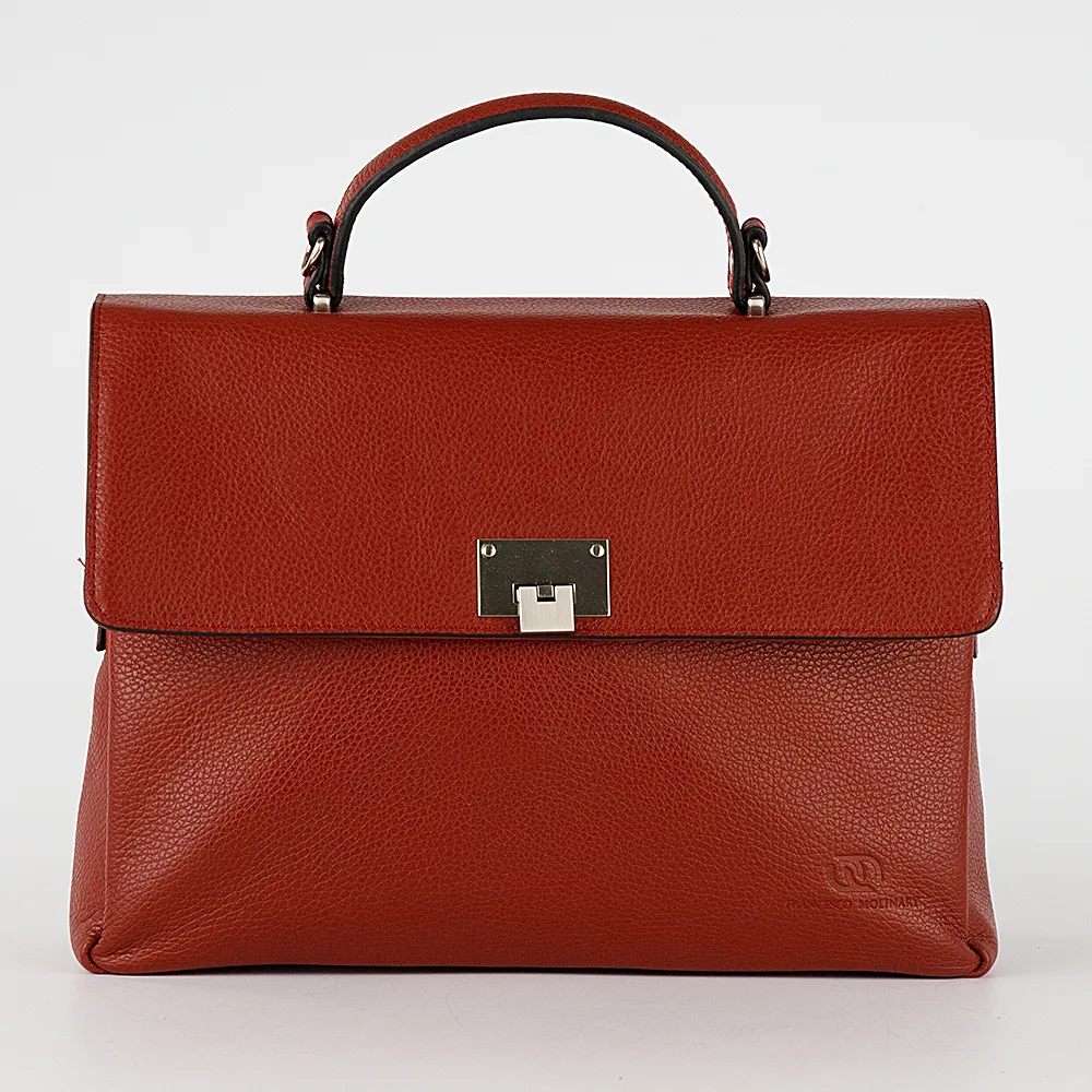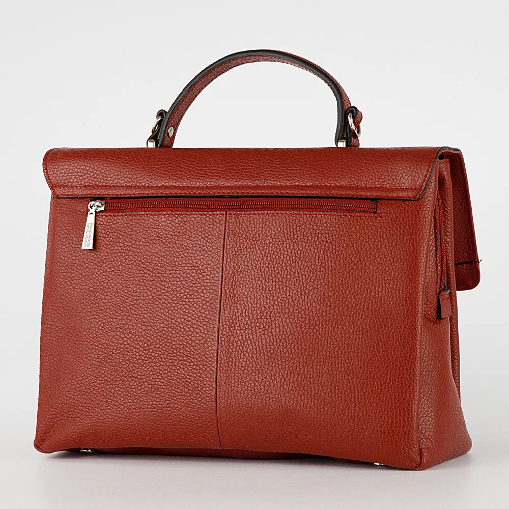 Женский портфель от торговой марки Poshete из натуральной кожи темно-синего цвета. Модель с одной ручкой и съемным регулируемым плечевым ремнем. Закрывается клапаном на откидном замке. Три отделения с фирменной подкладкой. Крайние отделения без застежки. Среднее отделение на молнии. Внутри: карман на молнии, два накладных кармана. На задней стороне – карман на молнии. Дно оснащено ножками для защиты от износа.