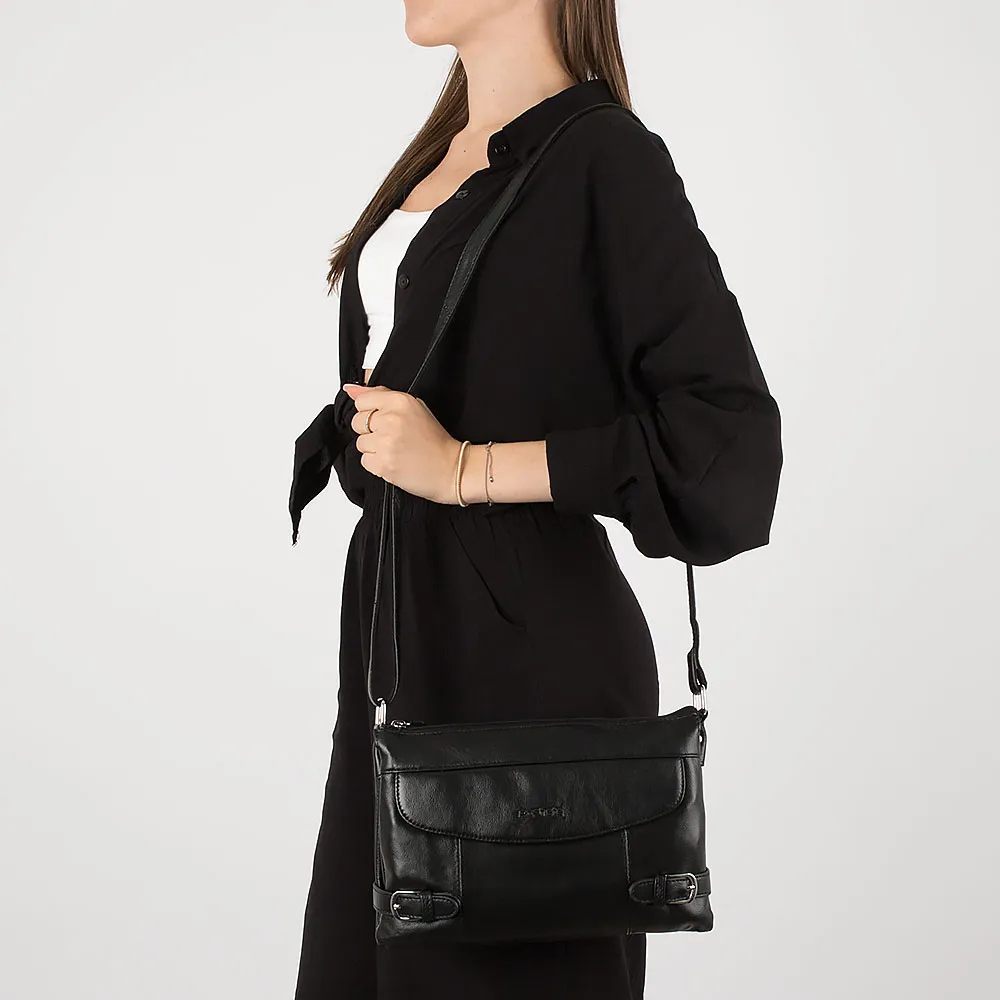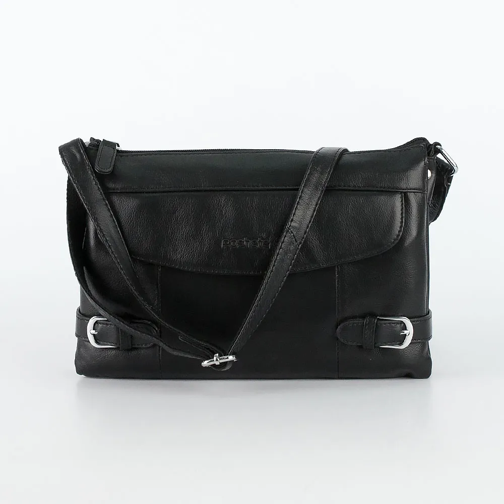Стильный женский планшет Poshete выполнен из натуральной кожи в чёрном цвете, прямоугольной формы. Носится на регулируемом ремне через плечо, что позволяет с комфортом передвигаться и быстро достать необходимое. Застёгивается на молнию, внутри текстильная подкладка, несколько отделений и кармашки. Снаружи оснащён дополнительными карманами на молниях.