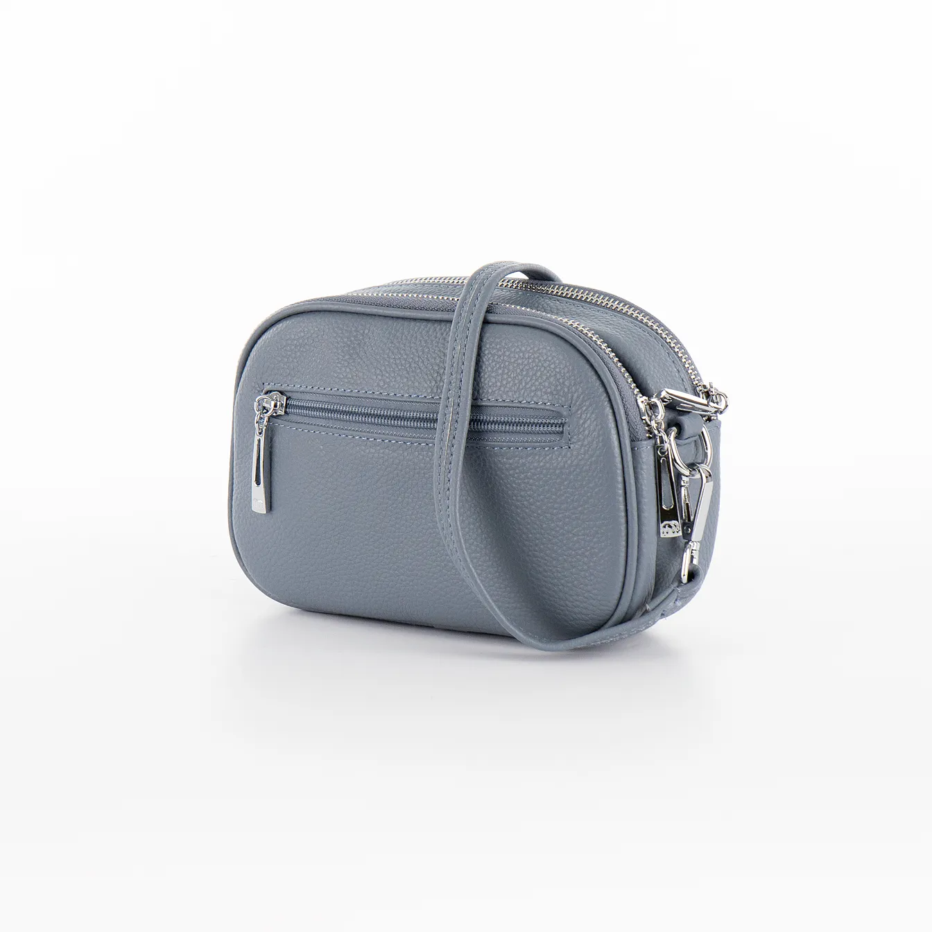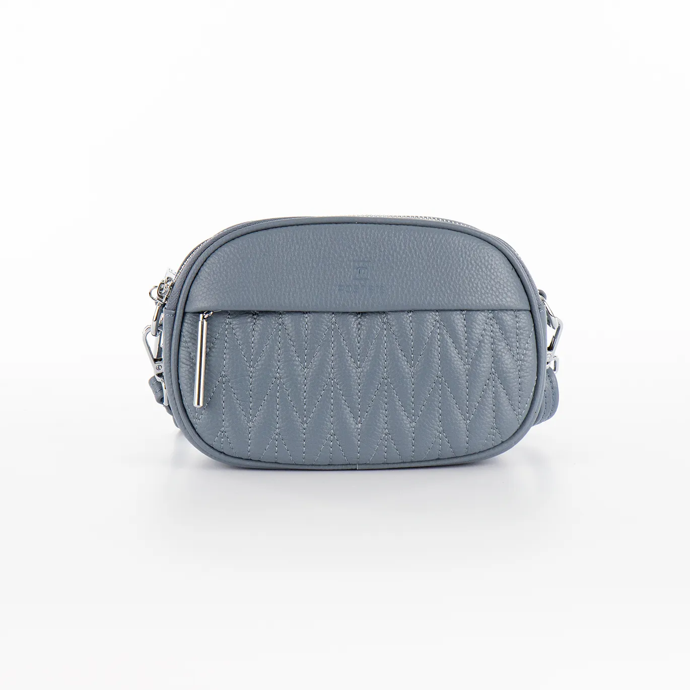 Сумка-планшет от торговой марки Poshete из натуральной кожи голубого цвета. Компактная модель со съемным регулируемым плечевым ремнем. Два отделения на молнии, с фирменной подкладкой. В заднем отделении – карман на молнии. На лицевой и задней сторонах – карман на молнии. Лицевая сторона декорирована узорной стежкой.
